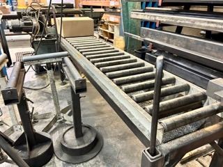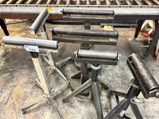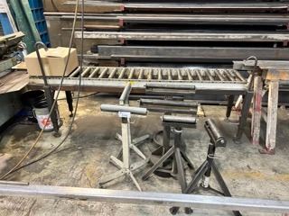3 ASSORTED PAIRS OF ROLLER STANDS AND 8' ROLLING CONVEYOR BELT