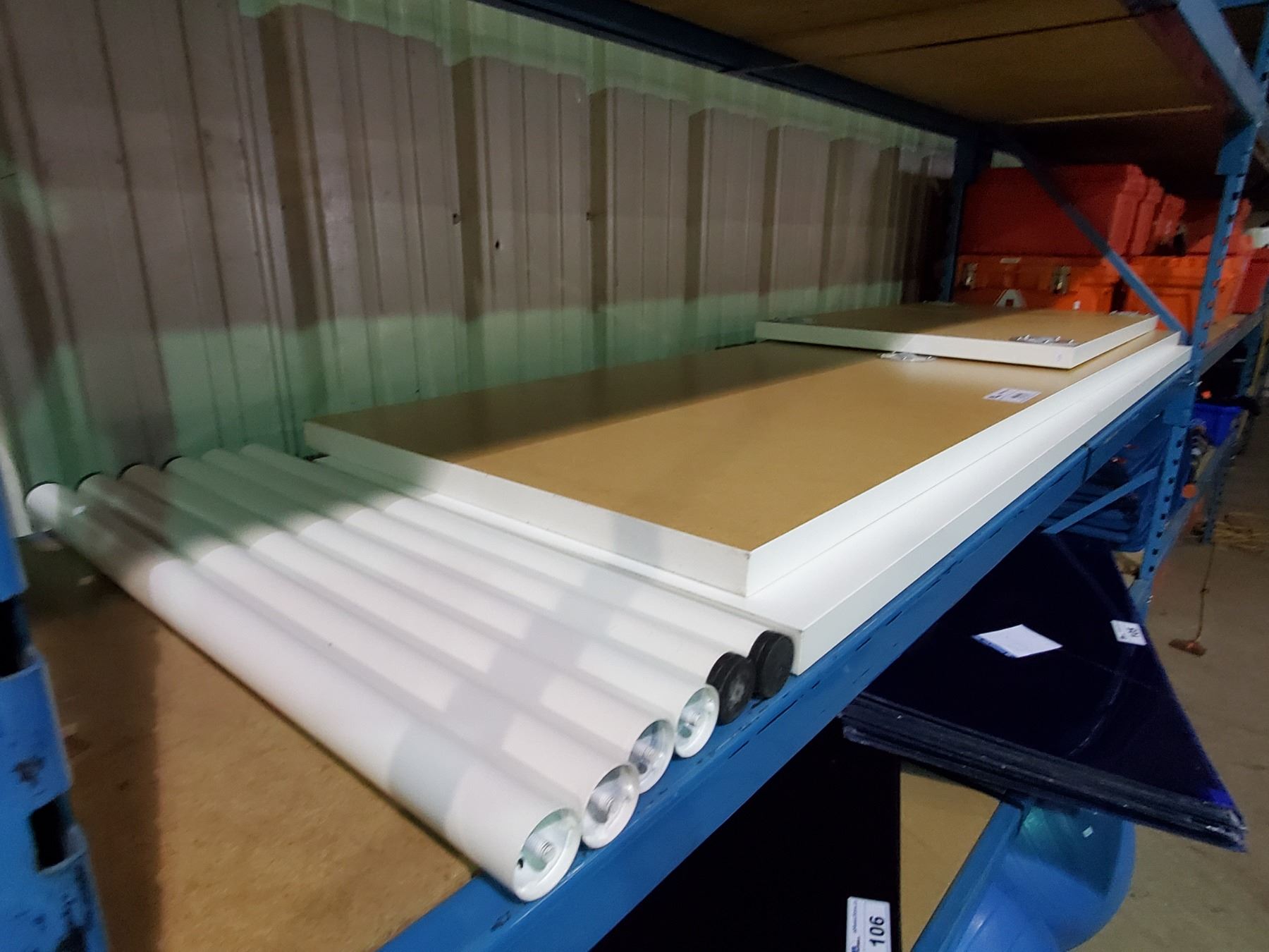 3 ASSORTED SIZED WHITE TABLES WITH 6 SCREW ON LEGS