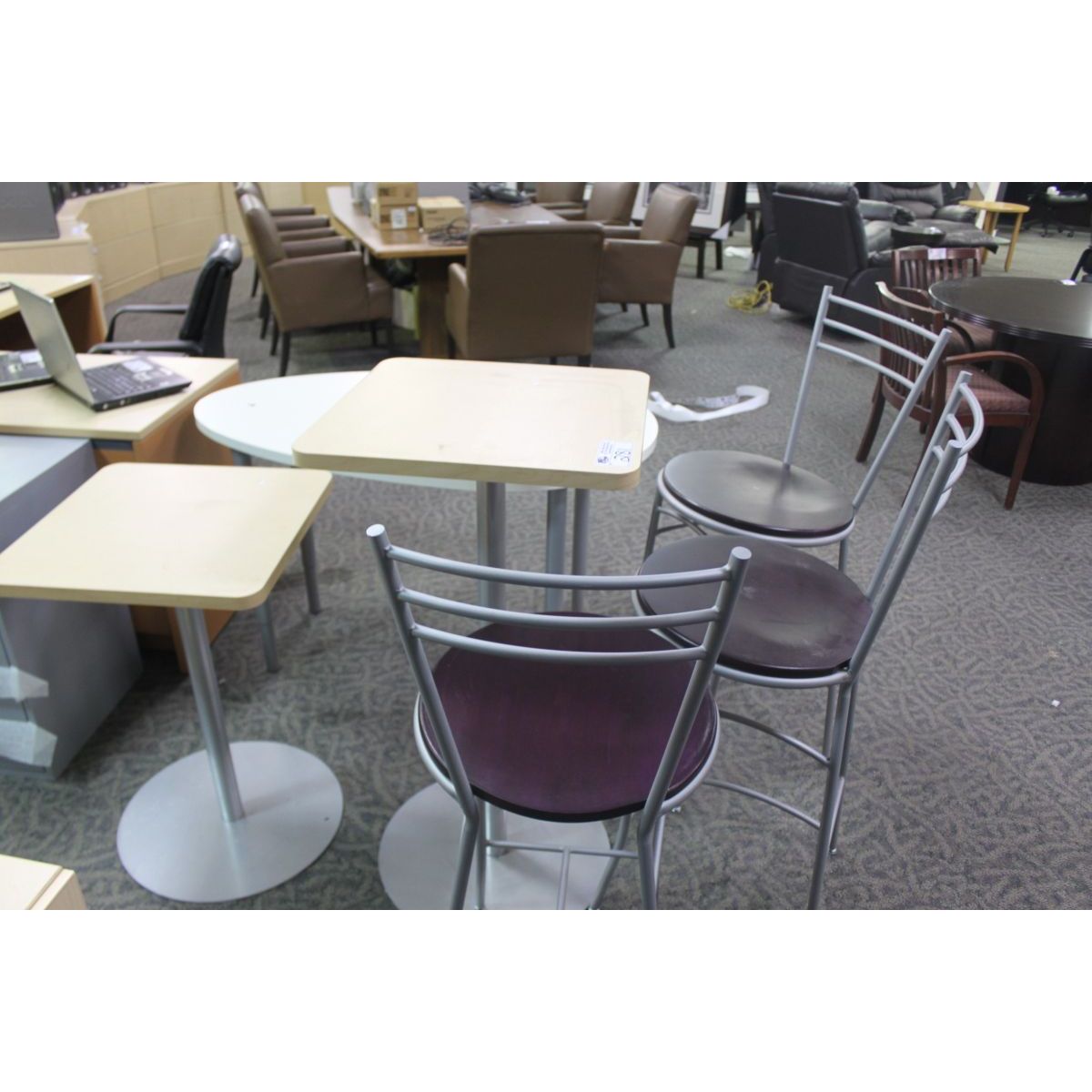 3 ASSORTED TABLES WITH 3 BAR STOOLS