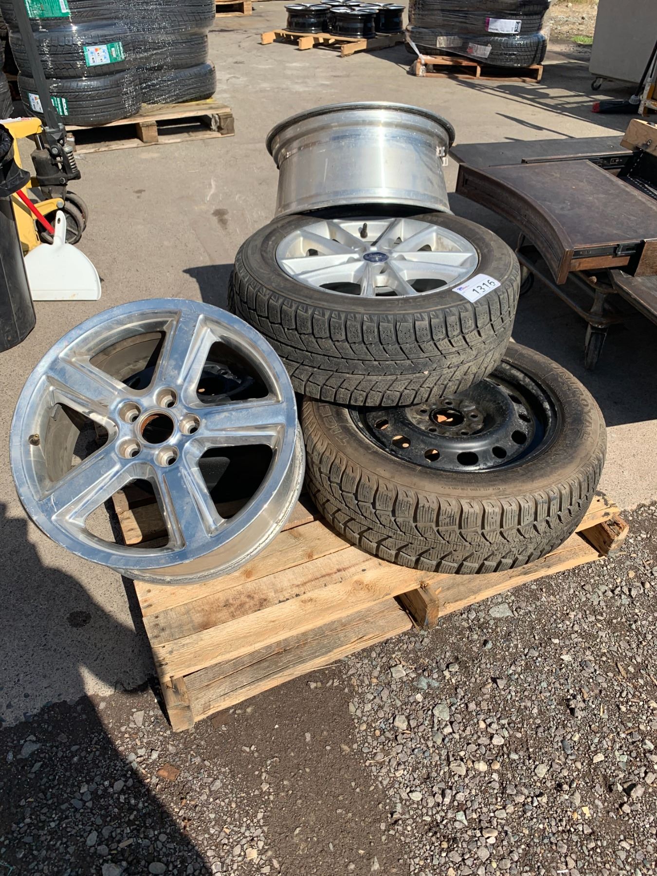 3 ASSORTED TIRES MOUNTED ON ASSORTED METAL RIMS & 3 ASSORTED METAL RIMS