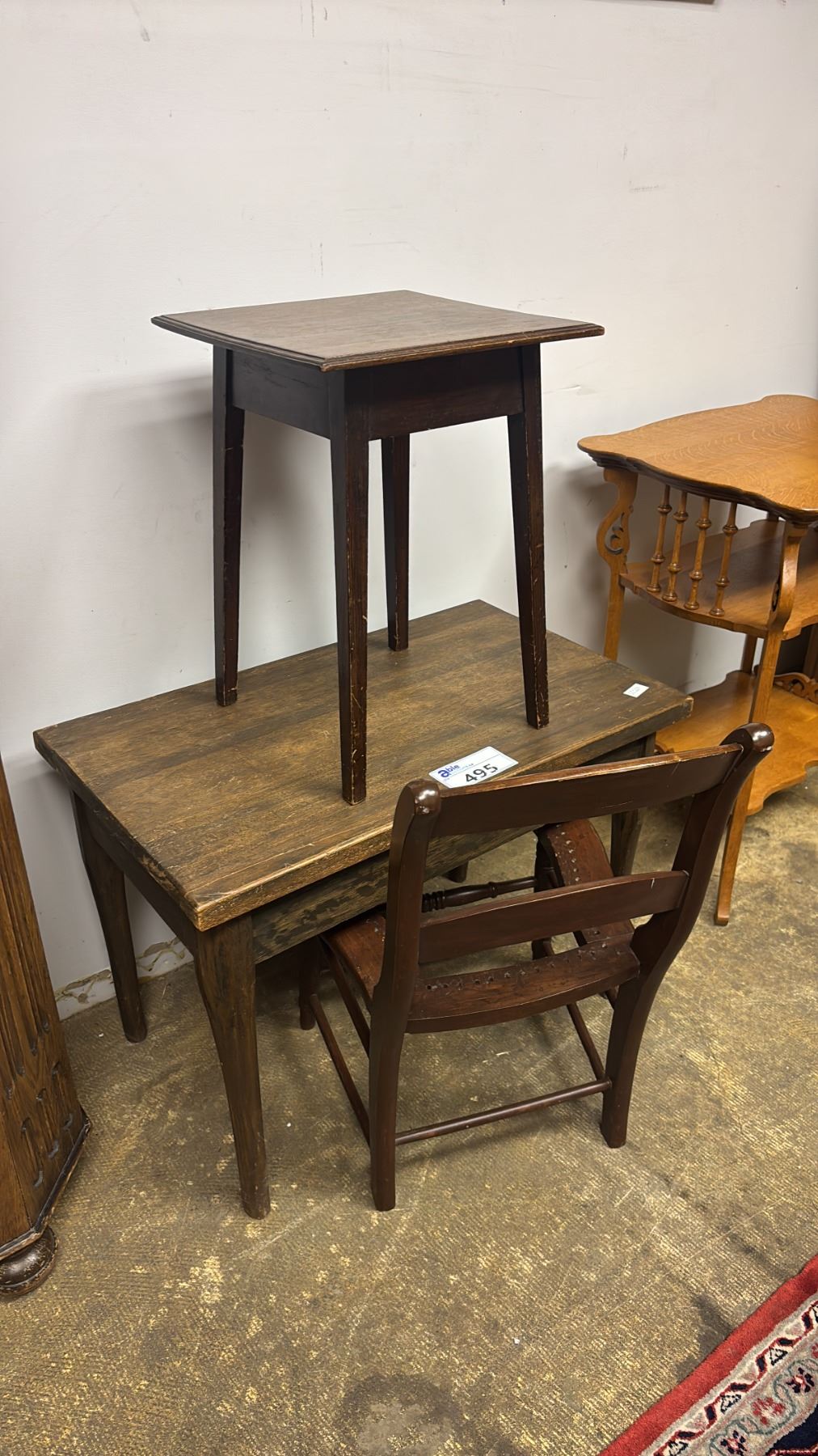 3 ASSORTED VINTAGE WOOD FURNITURE PIECES - 2 SMALL TABLES & CHAIR (NO SEAT)