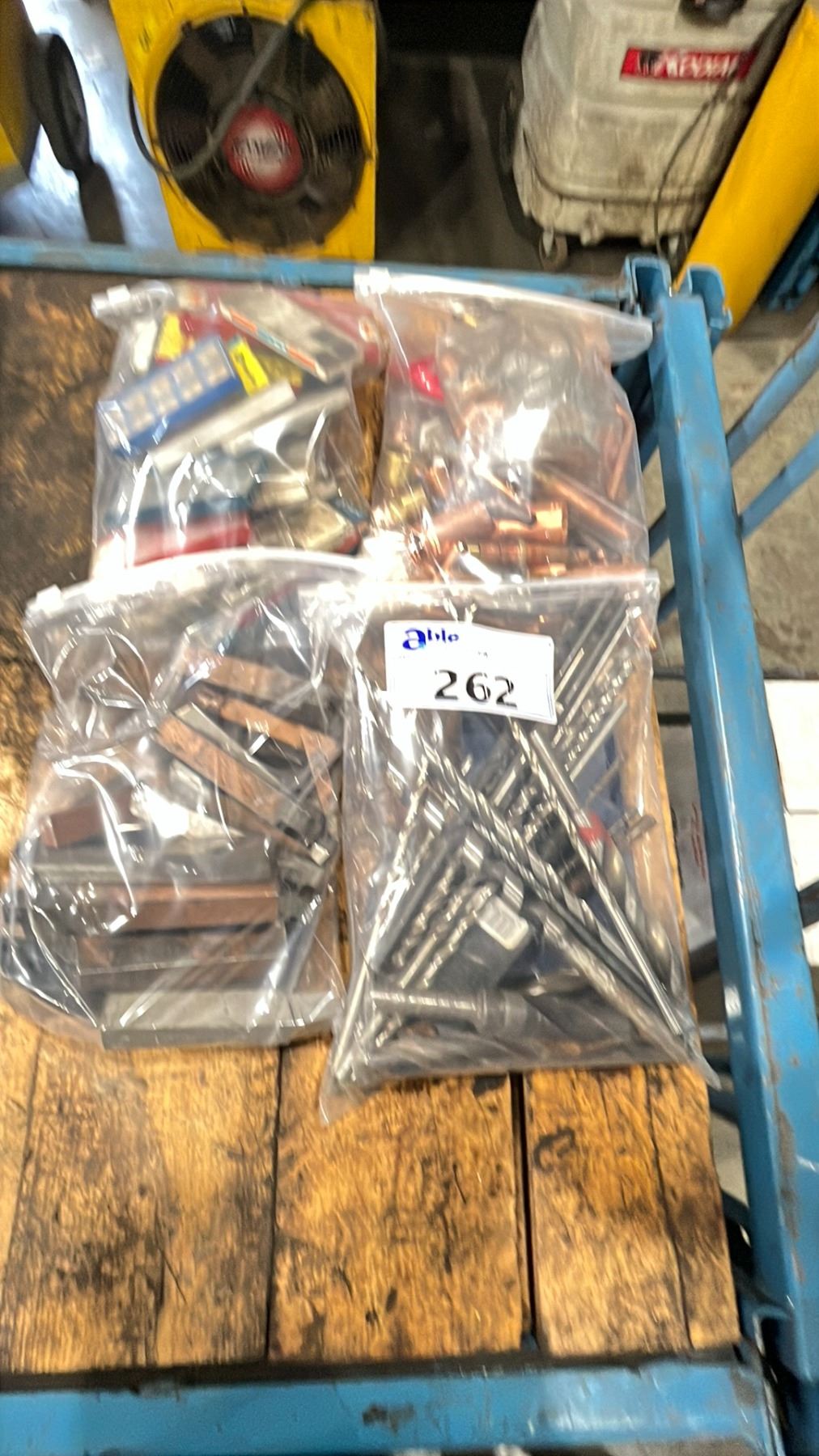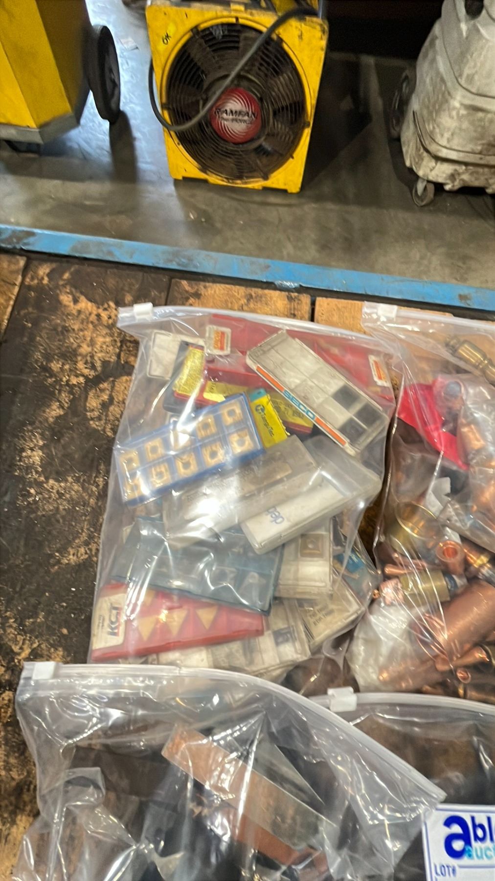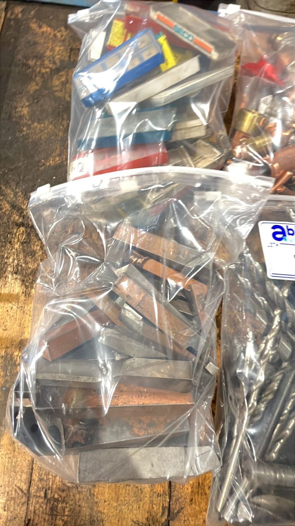 3 BAGS OF ASSORTED MACHINING TOOLS, INSERTS, CUTTERS, DRILL BITS & COPPER TORCH FITTINGS