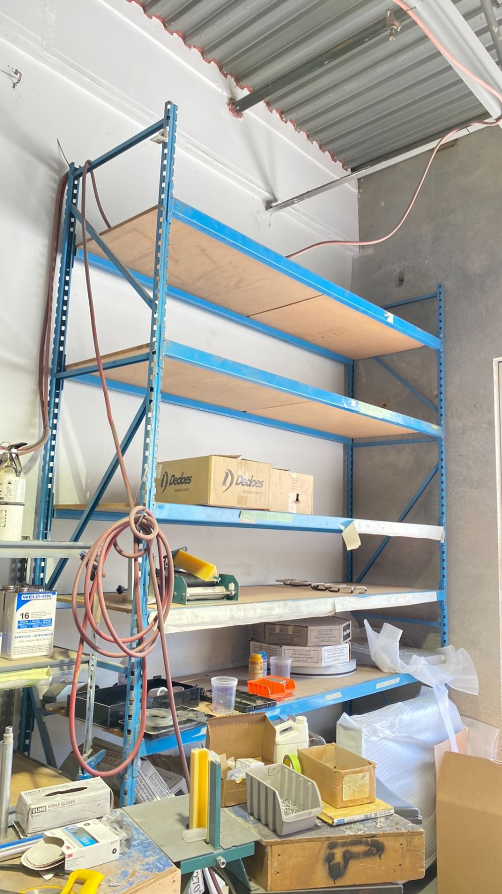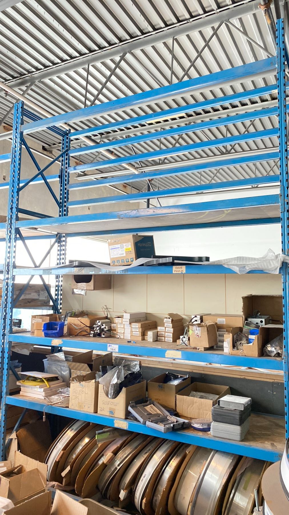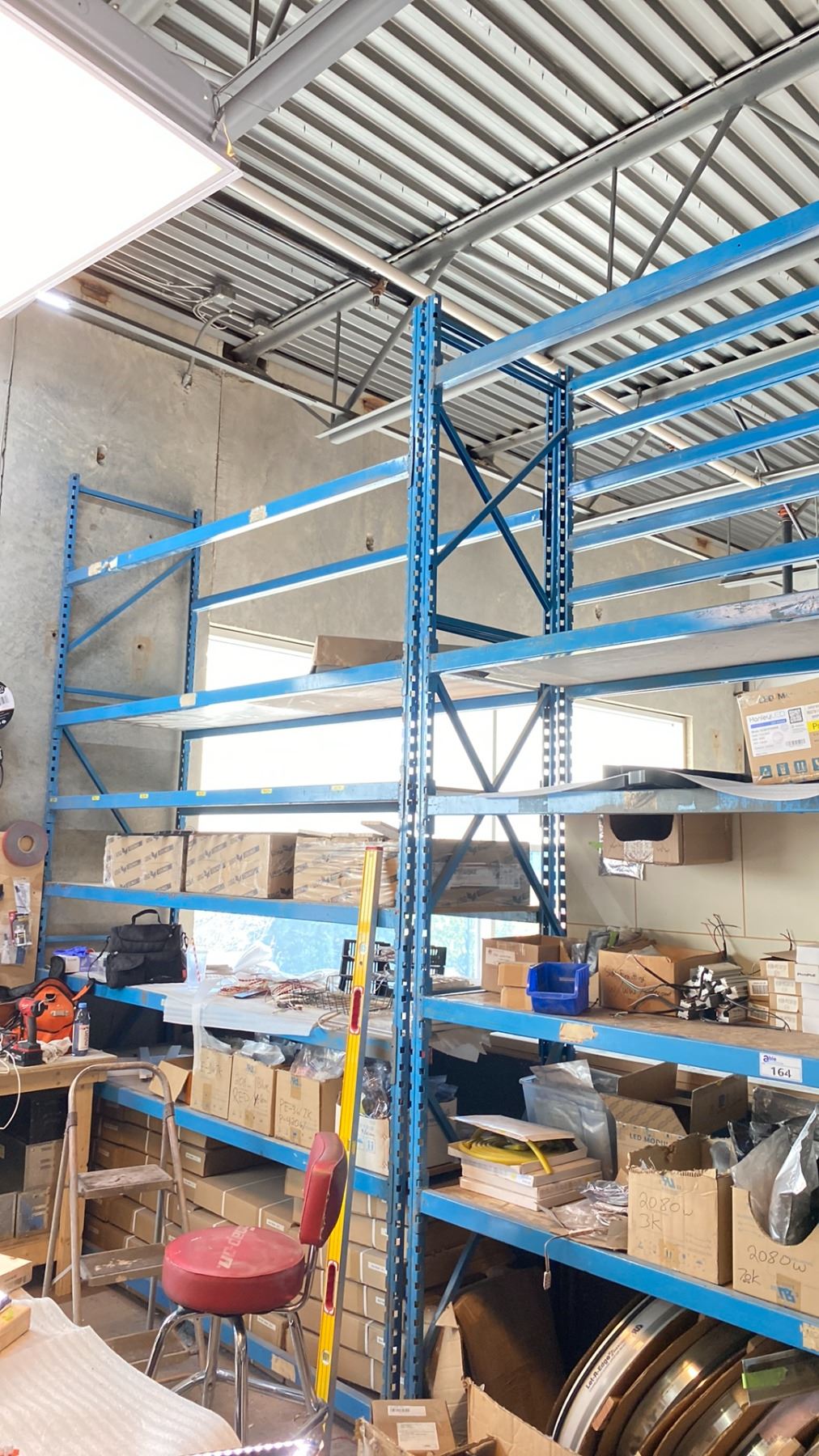3 BAYS OF BLUE PARTS SHELVING 96" X 30" X 10" (CONTENTS NOT INCLUDED) REQUIRES TOOLS TO DISMANTLE