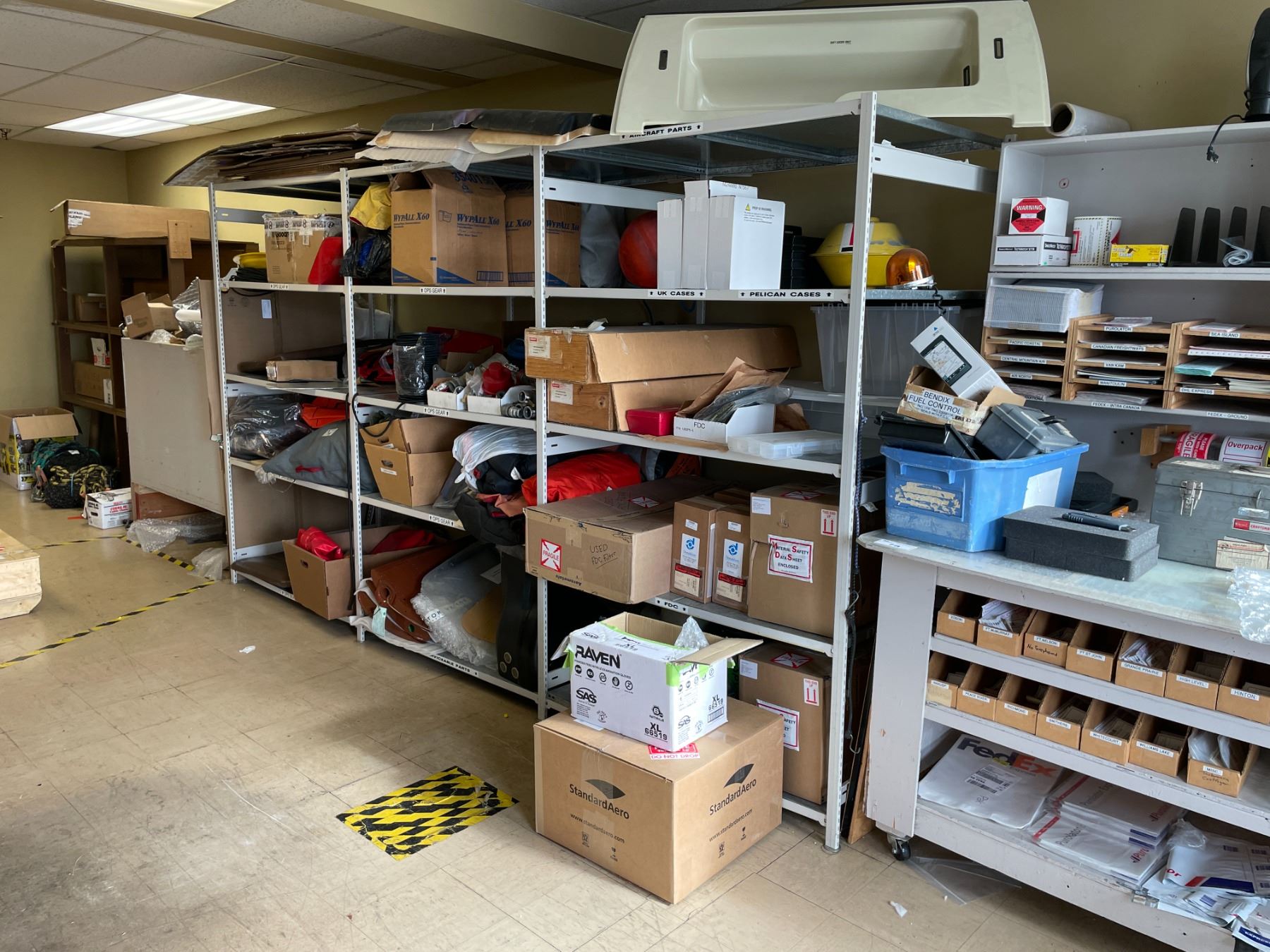 3 BAYS OF EZ-RECT STYLE PARTS SHELVING 84"H X 48"W X 36"D ( HELICOPTER PARTS NOT INCLUDED ) *SIZE IS PER BAY*
