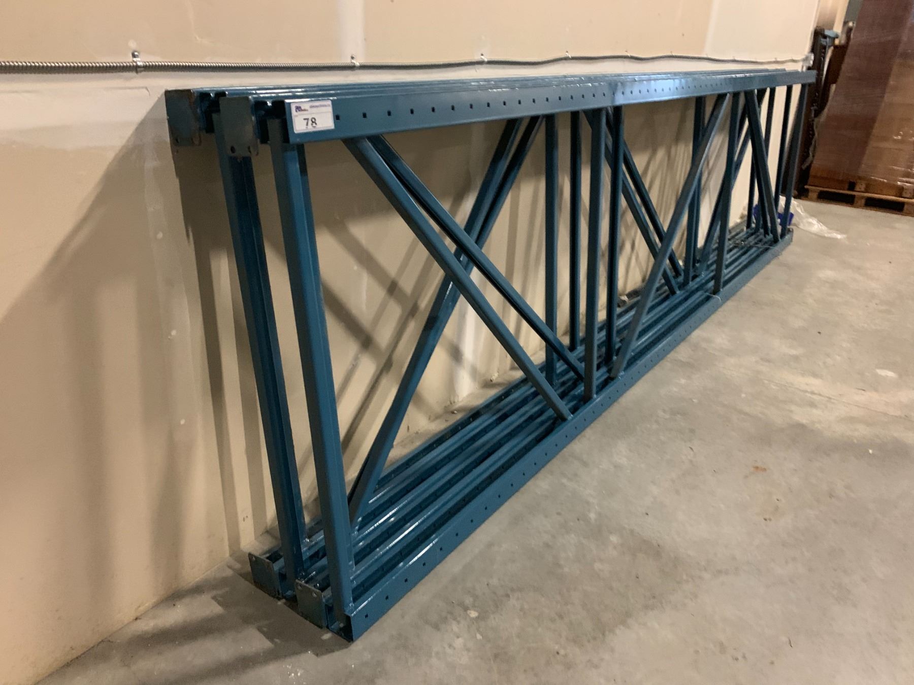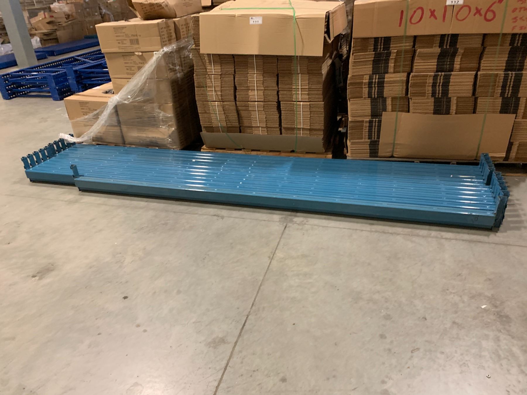 3 BAYS OF INDUSTRIAL PALLET RACKING INCLUDING 4 - 16' X 4' UPRIGHTS, 12 - 12' X 4" CROSS BEAMS AND 2 - 12' X 6.5" CROSS BEAMS