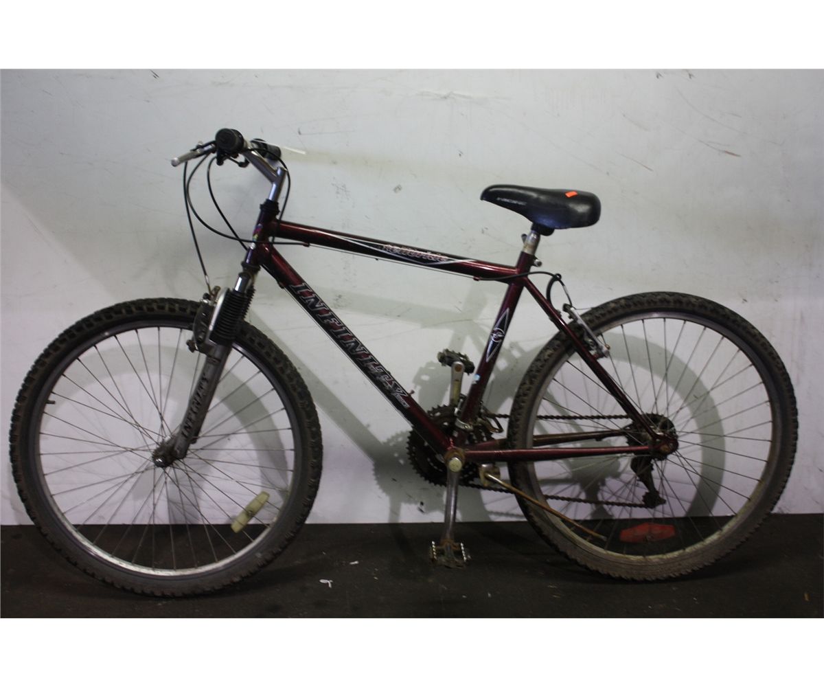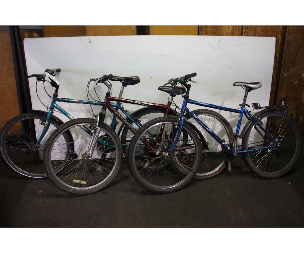 3 BIKES : GREEN BRC MOUNTAIN, BLUE NISHIKI & A RED INFINITY FRONT SUSPENSION MOUNTAIN BIKES