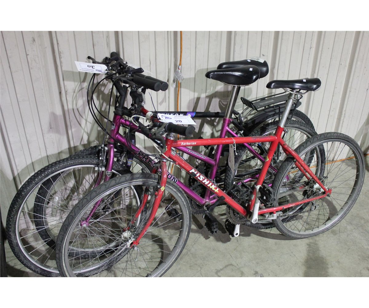 3 BIKES - RED NISHIKI MOUNTAIN, PURPLE PRECISION MOUNTAIN AND BLACK GIANT MOUNTAIN