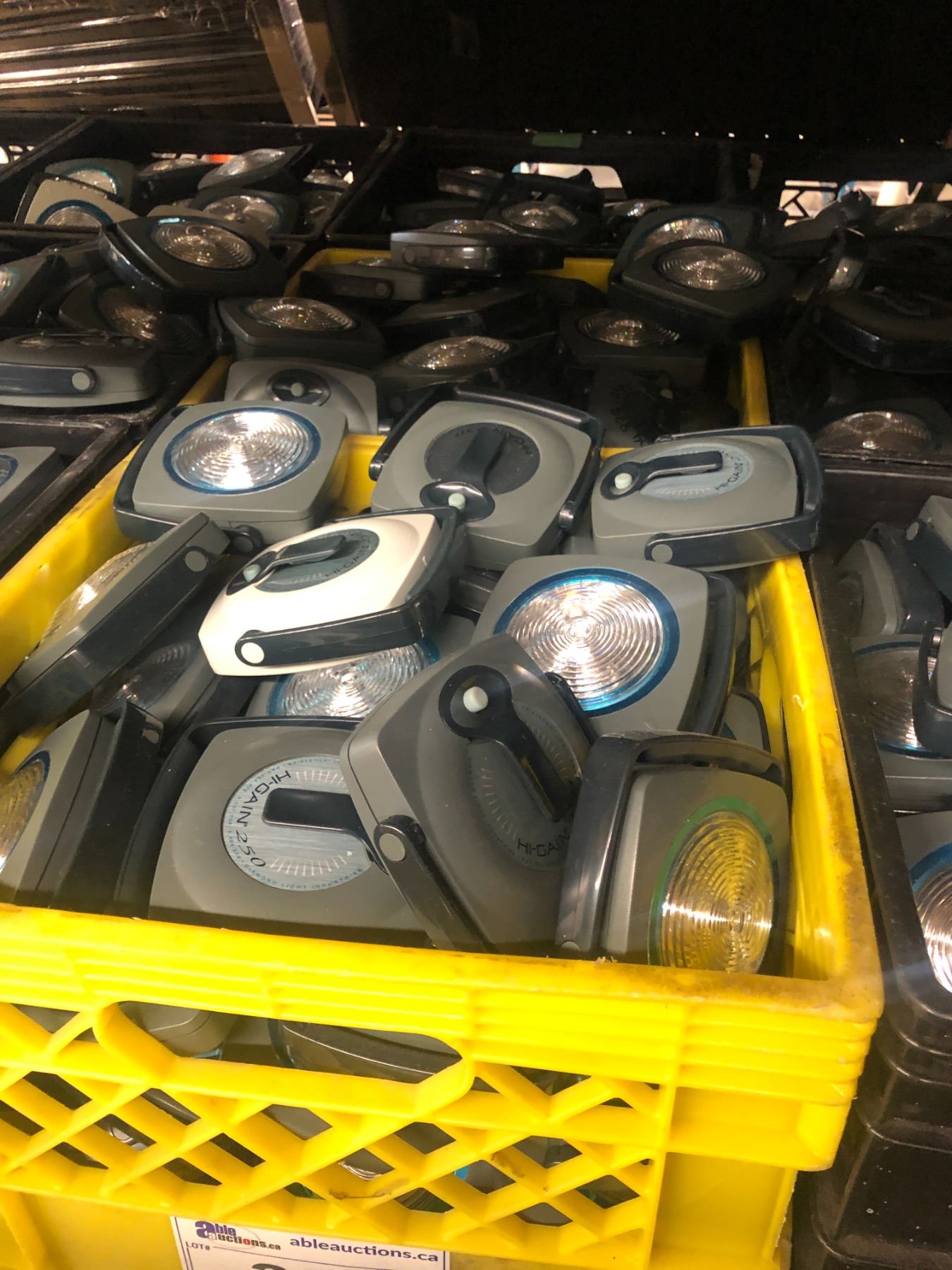 3 BINS OF HI-GAIN 250 FOLDING BATTERY POWERED LIGHTS