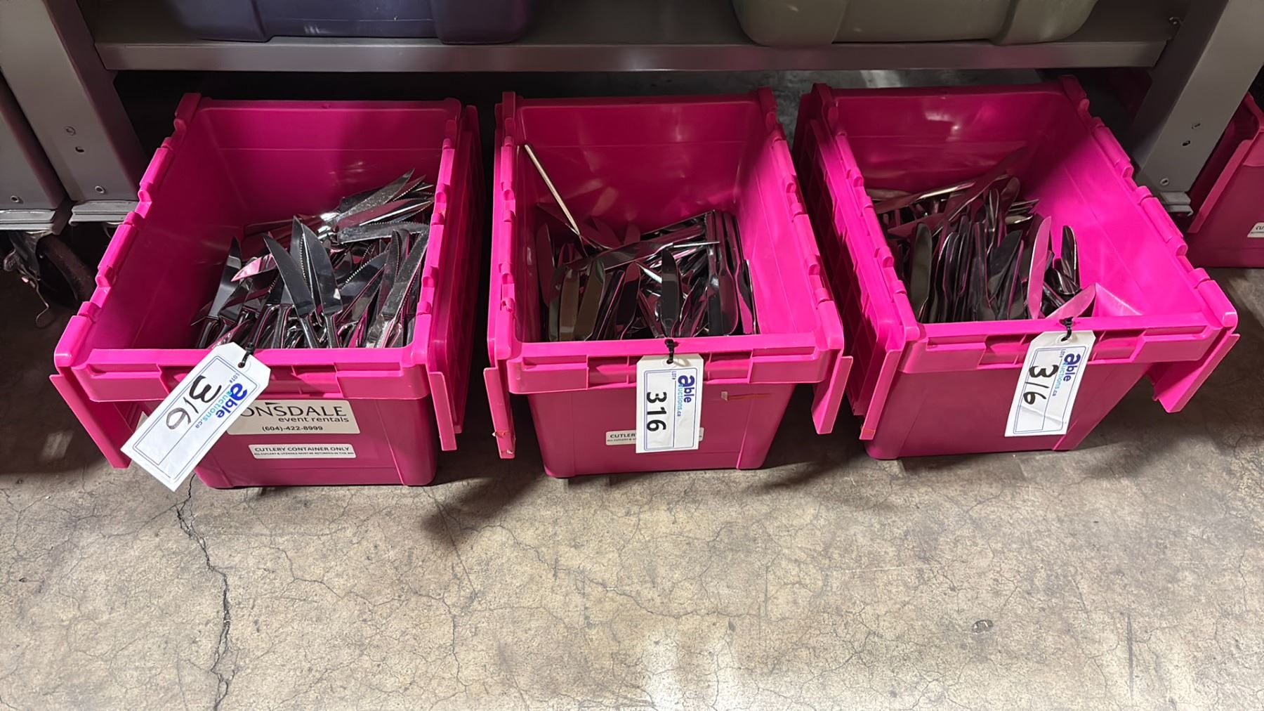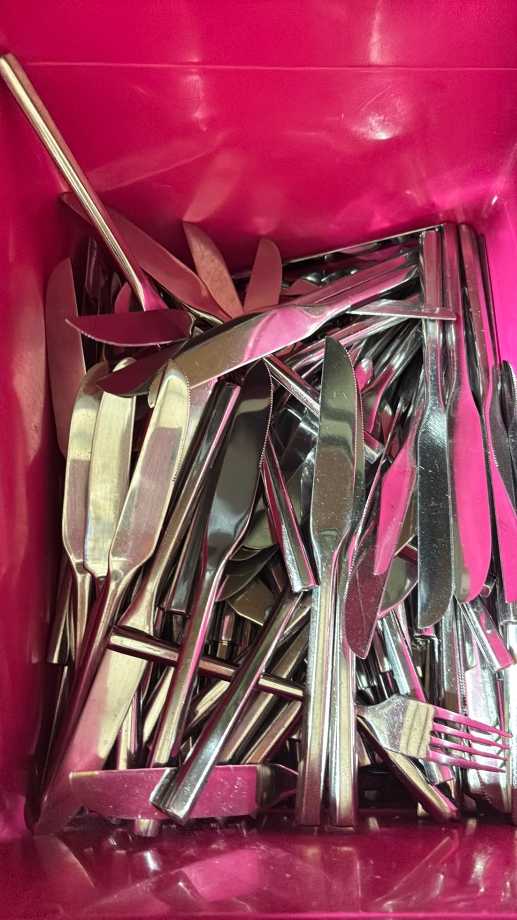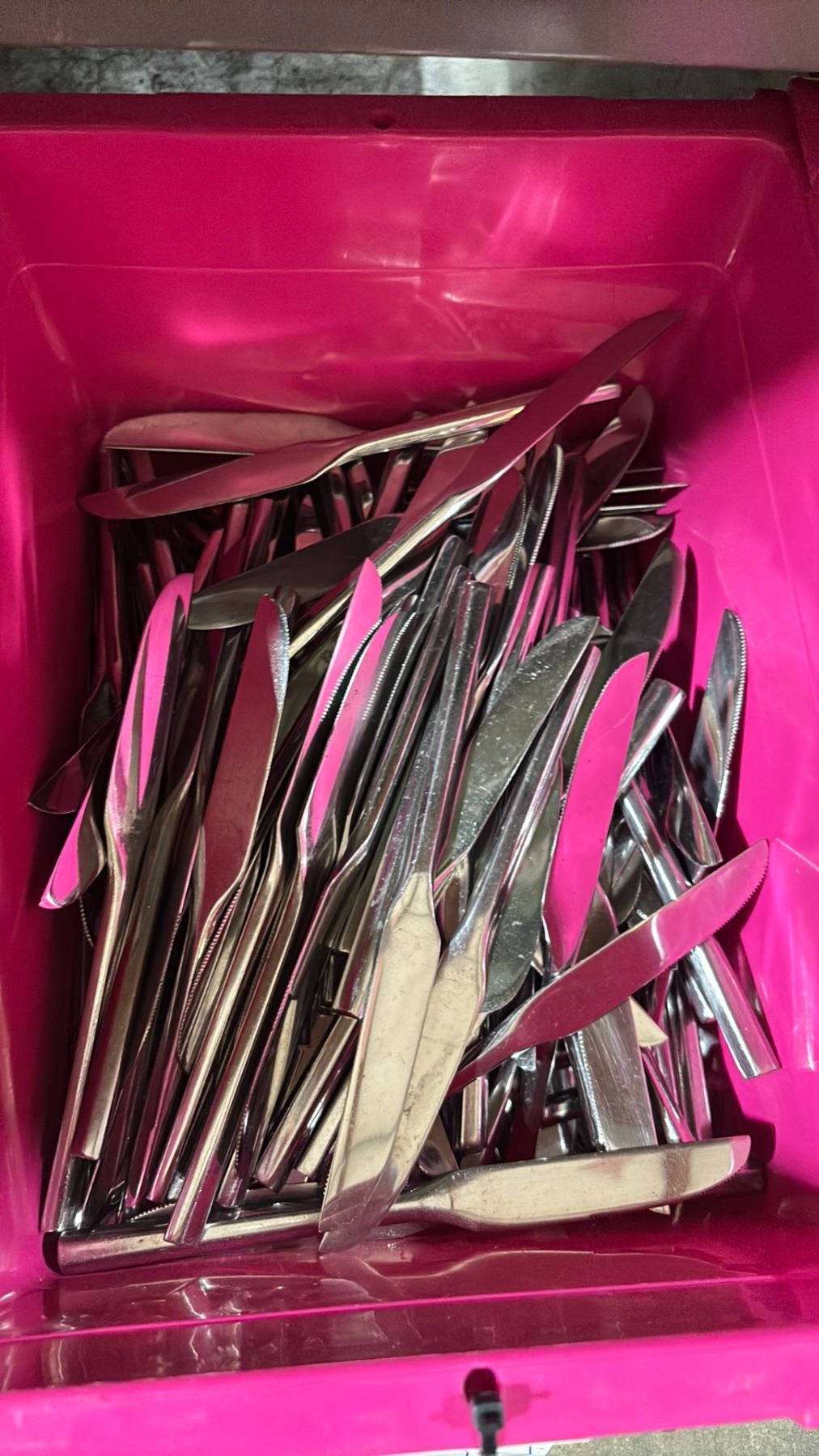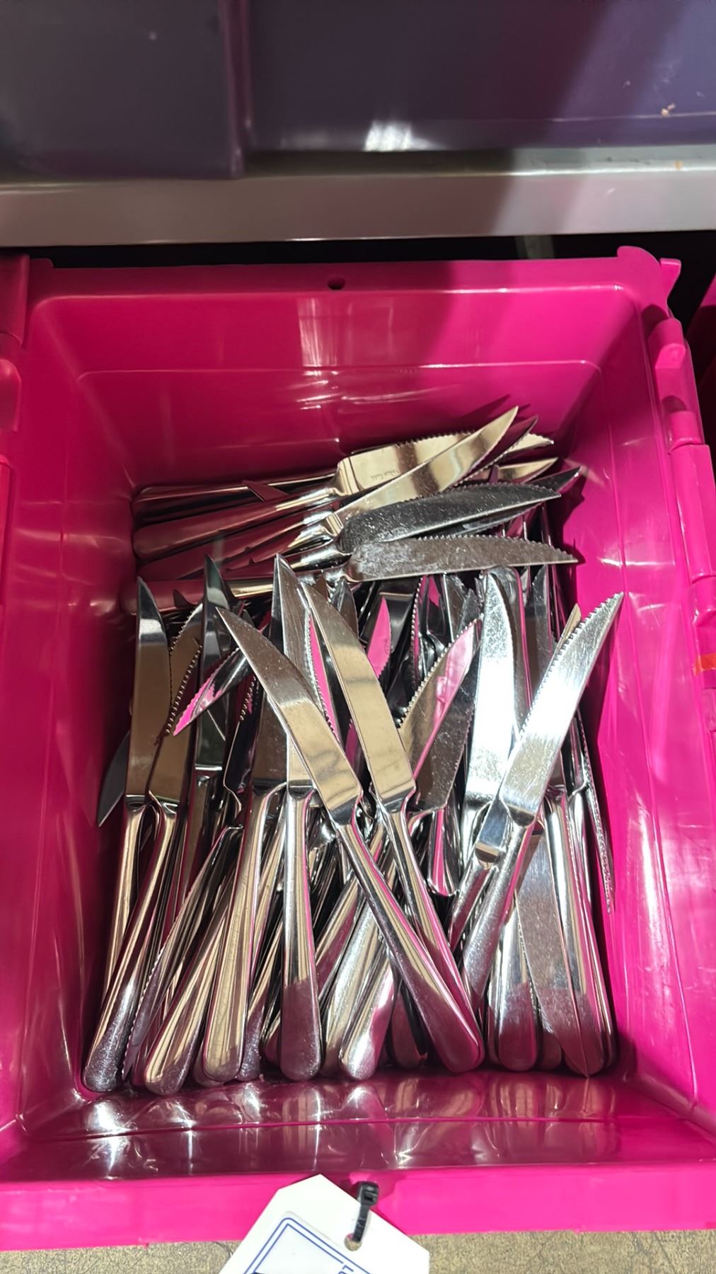 3- BINS OF STAINLESS STEEL ASSORTED KNIVES *BINS INCLUDED*