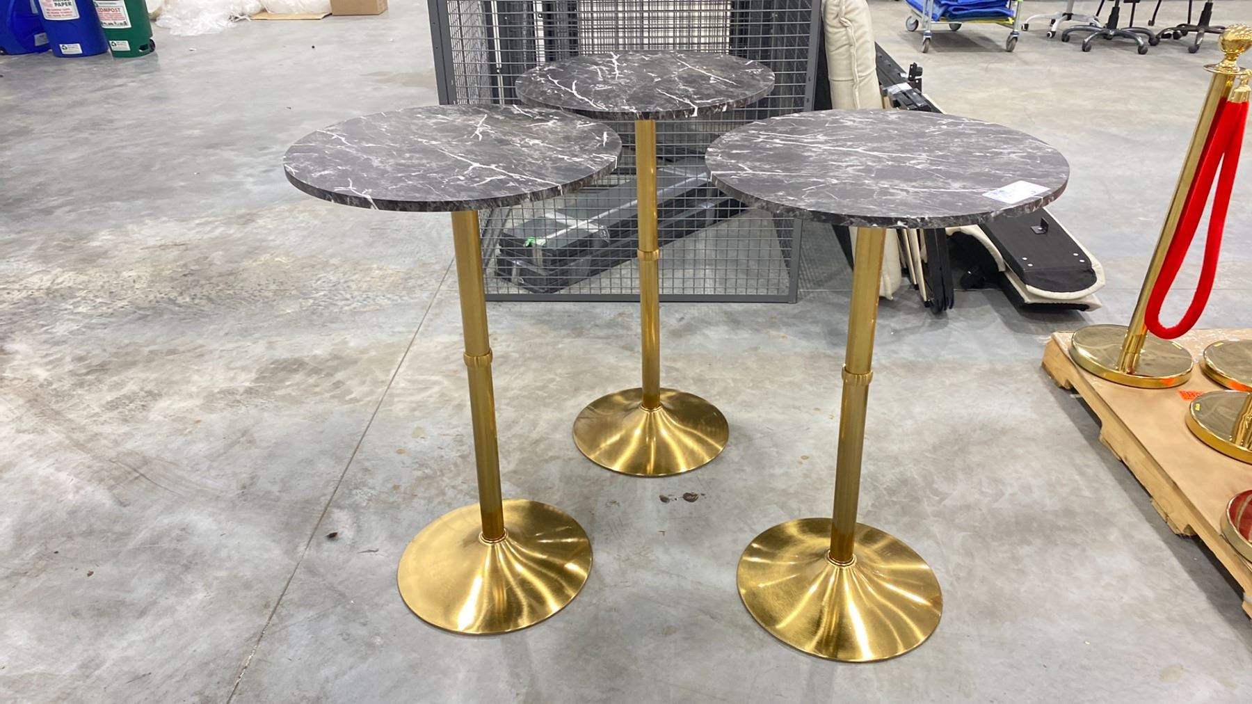 ( 3 ) BLACK MARBLE TOP LOOK GOLDEN BASE BAR TABLES