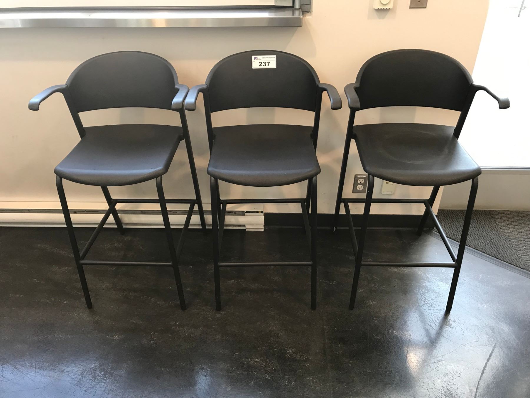 3 BLACK PLASTIC & METAL MODERN BAR CHAIRS