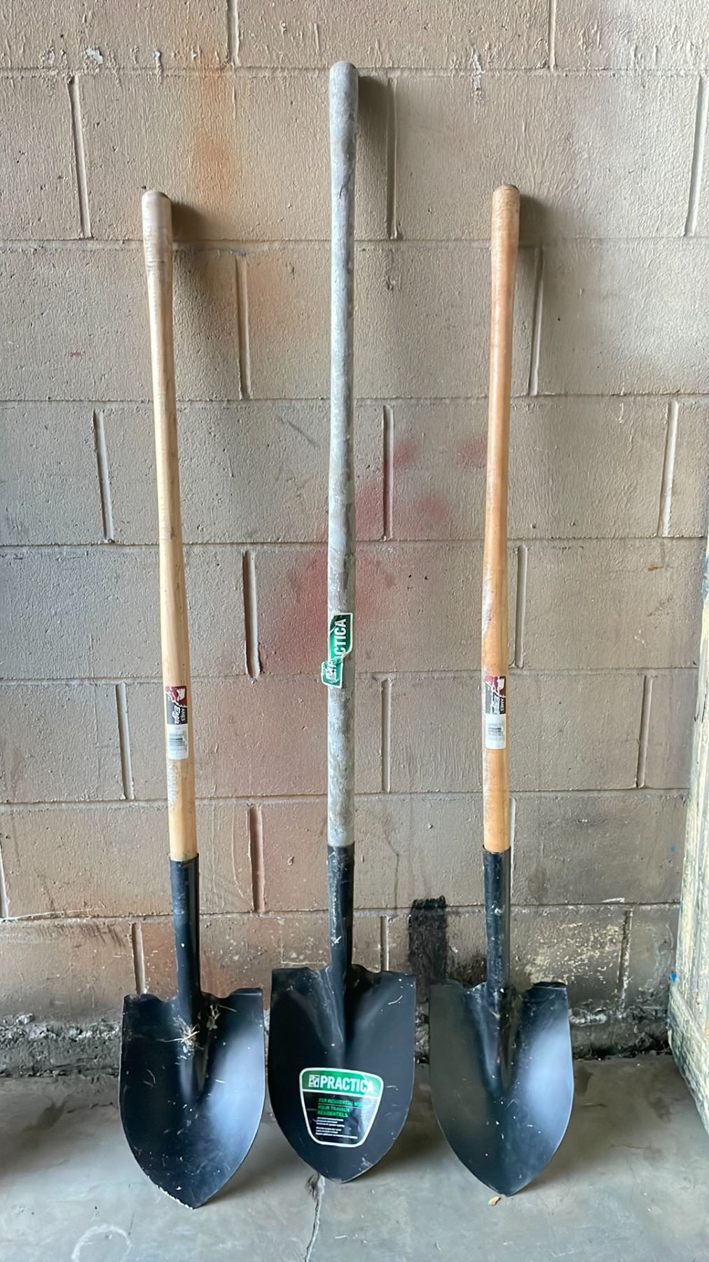 3 BLACK WOOD HANDLE METAL SPADE SHOVELS