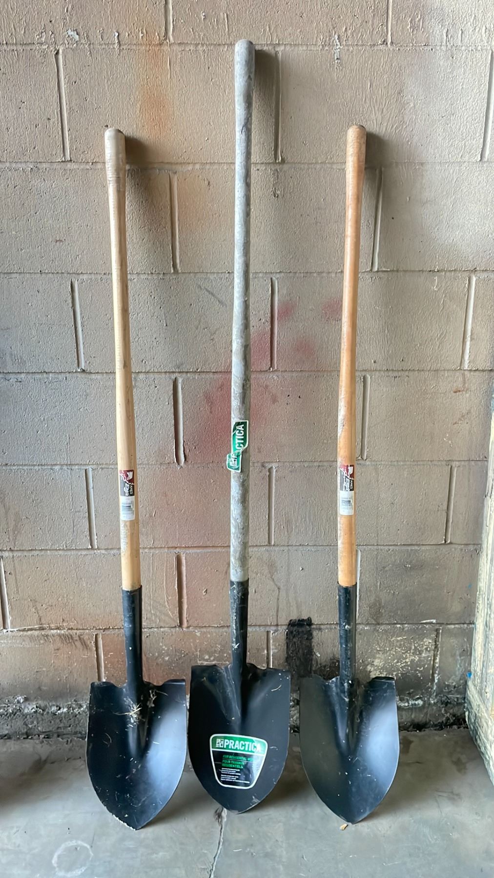3 BLACK WOOD HANDLE METAL SPADE SHOVELS