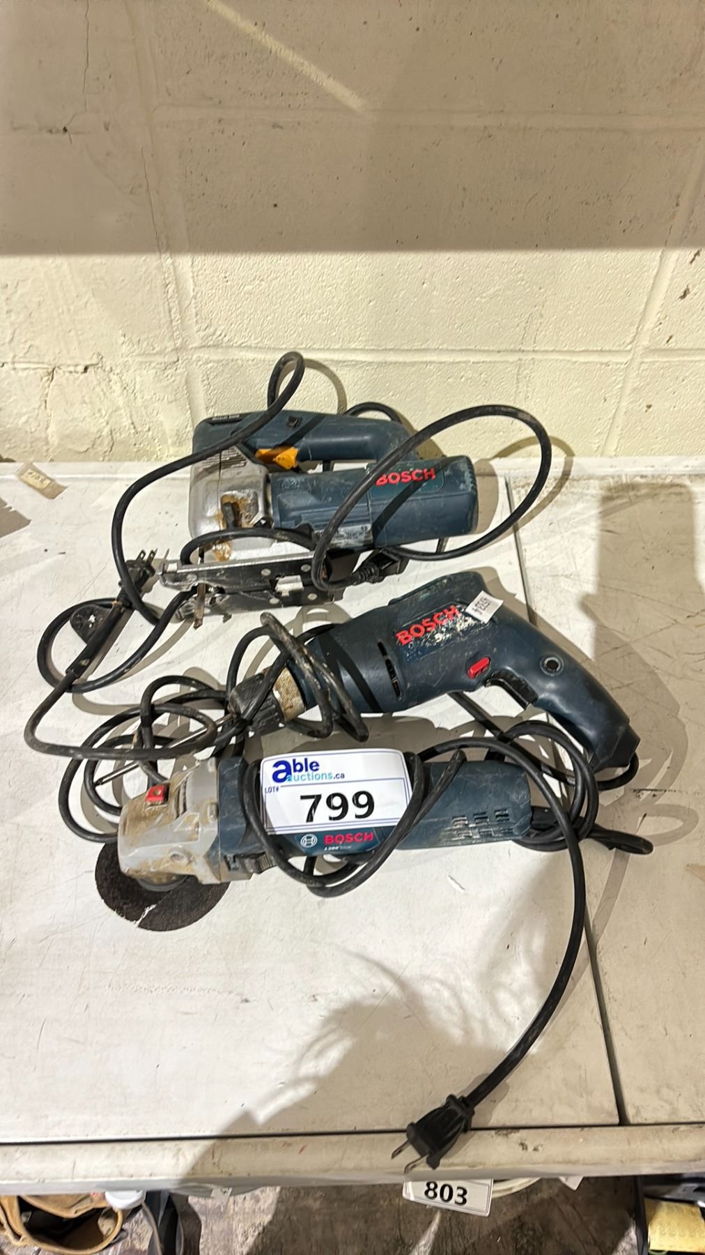 3 BOSCH TOOLS INCLUDING; ANGLE GRINDER, DRILL & JIGSAW