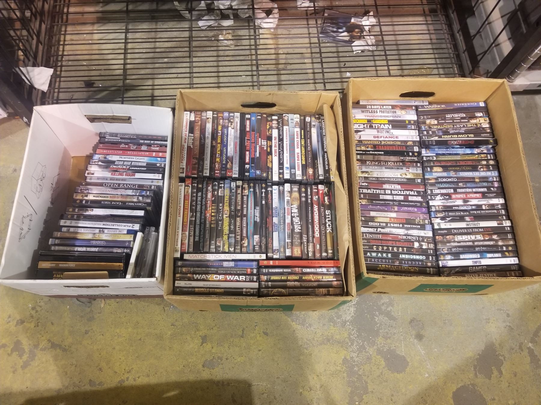 3 BOXES OF ASSORTED DVDS/CDS