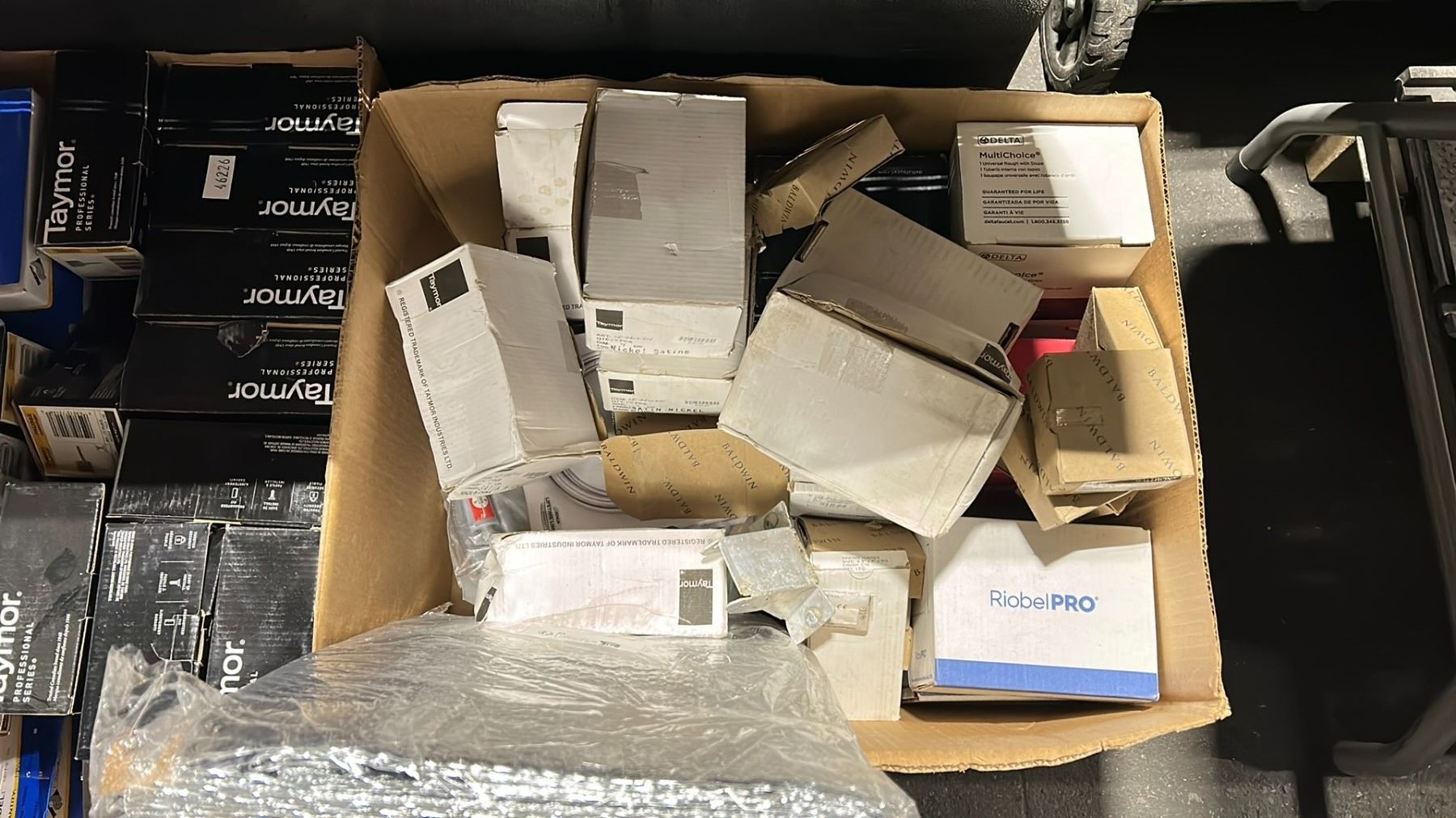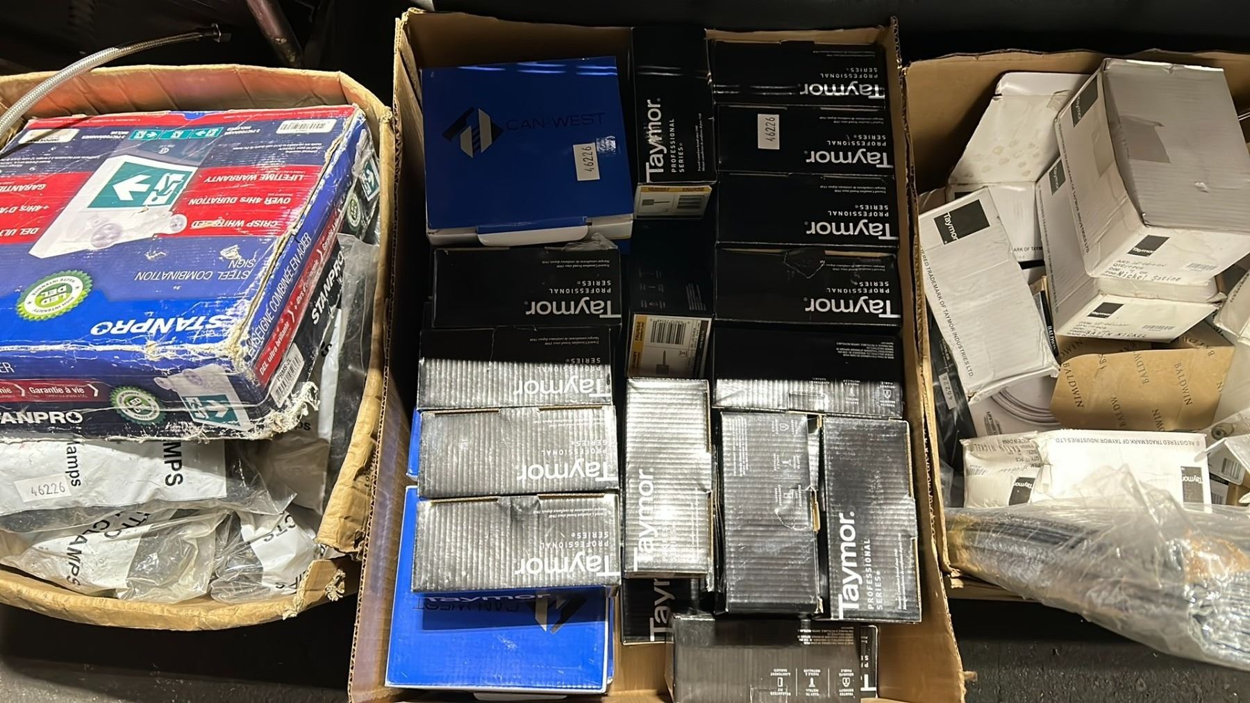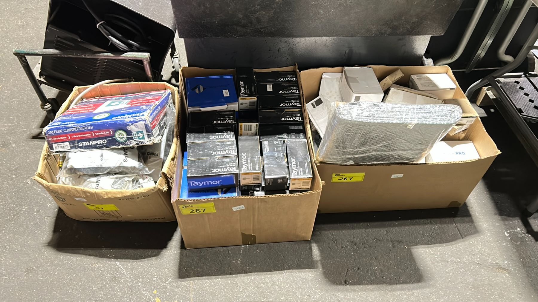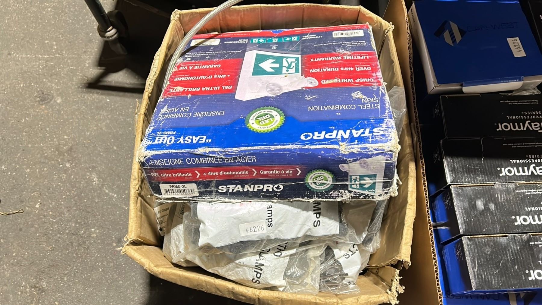 3 BOXES OF ASSORTED TAYMOR PROFESSIONAL LOCK SETS, EXIT SIGN, HEAT SHIELD, & PLUMBING HARDWARE