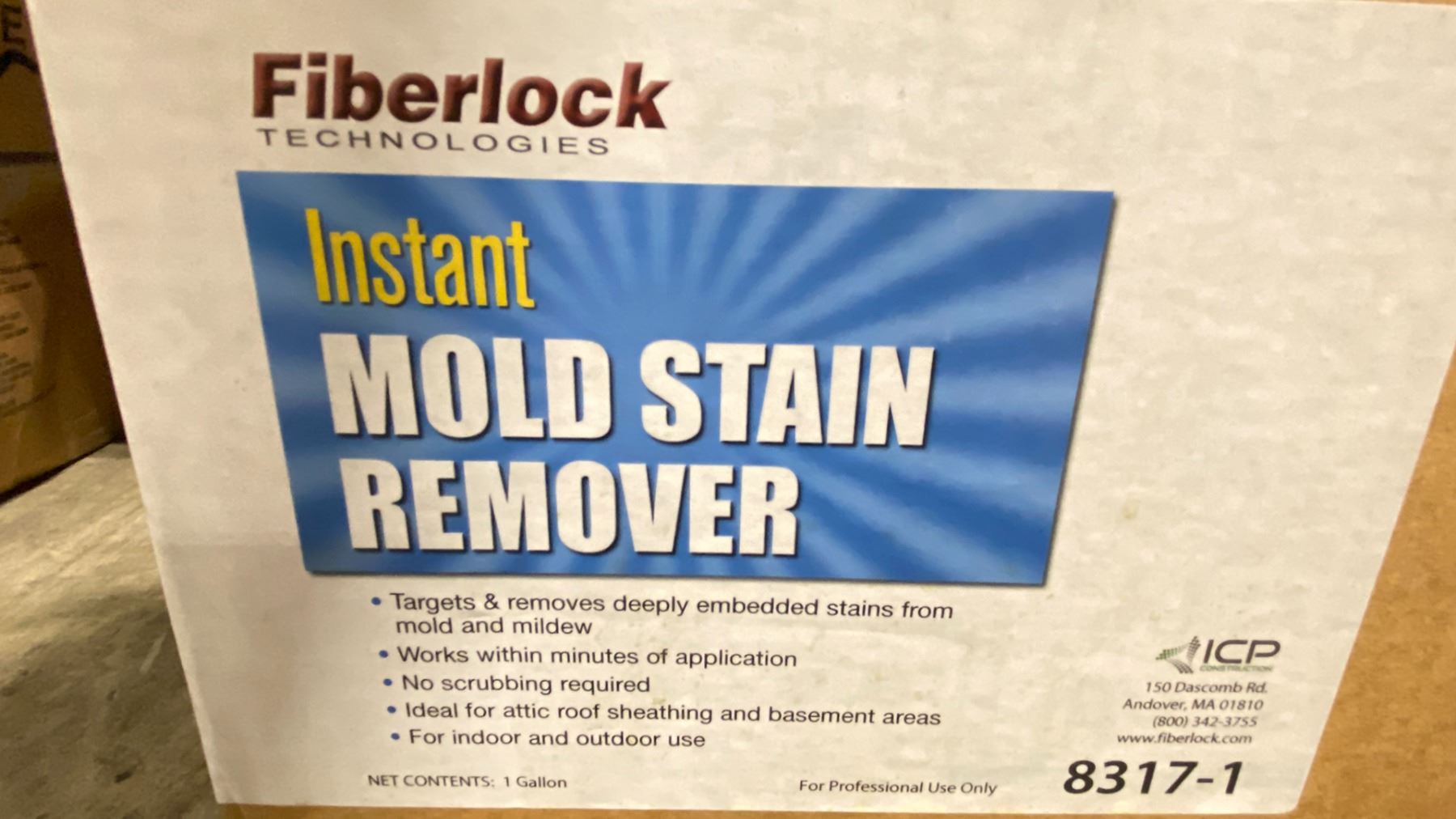 3 BOXES OF INSTANT COMMERCIAL MOLD STAIN REMOVER & RUBBERMAID COMMERCIAL MOP BUCKET