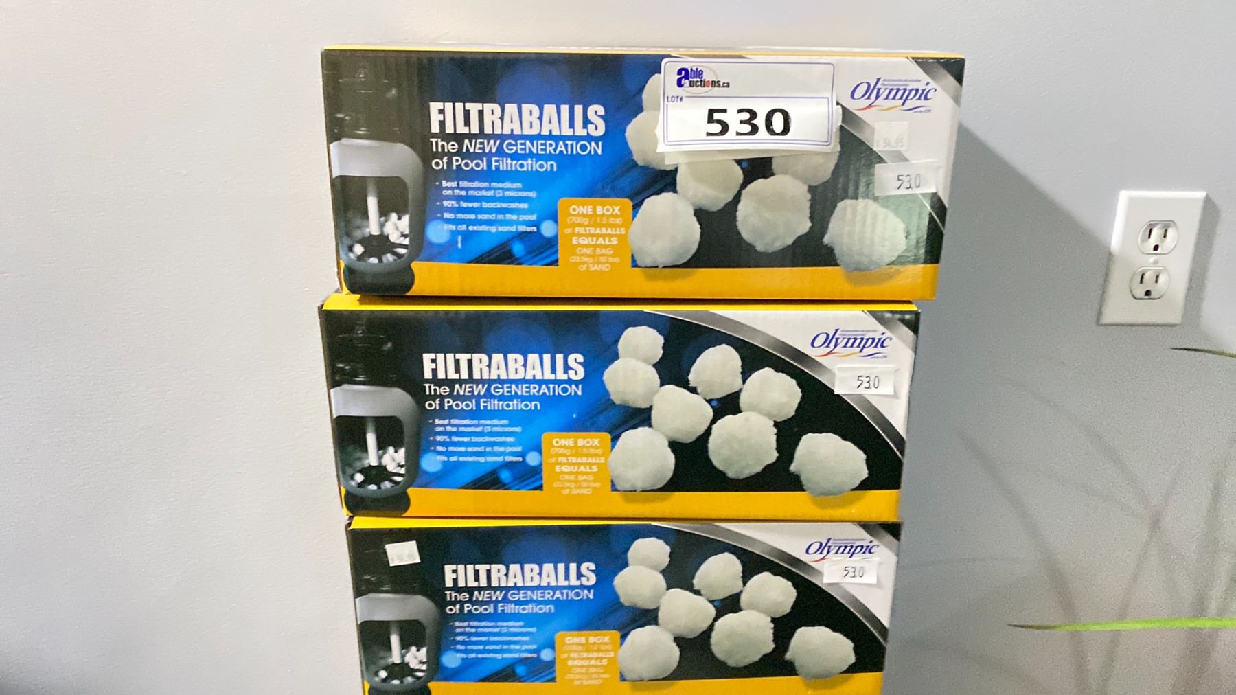 3 BOXES OF OLYMPIC FILTER BALLS. THESE REPLACE SAND IN POOL FILTERS. BEST FILTRATION MEDIUM ON THE MARKET AND REQUIRE FEWER BACKWASHES