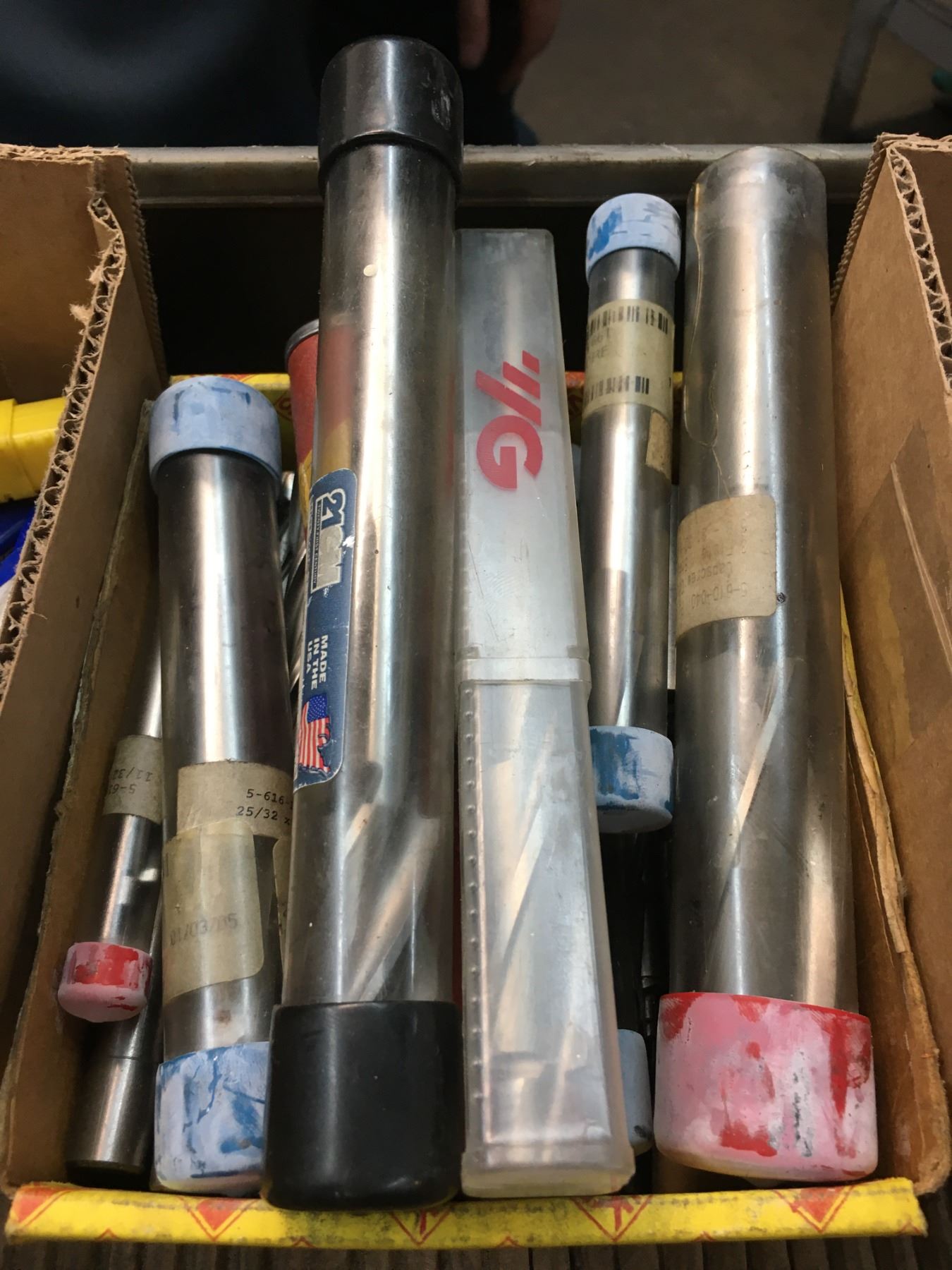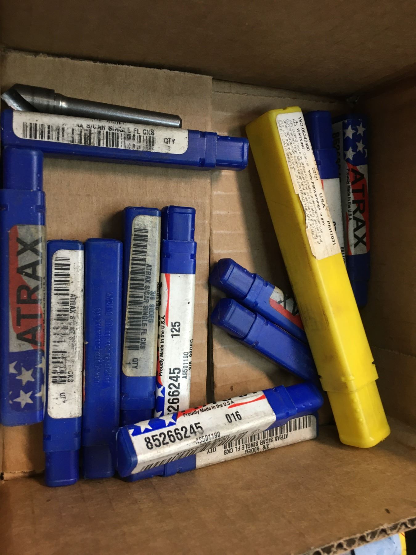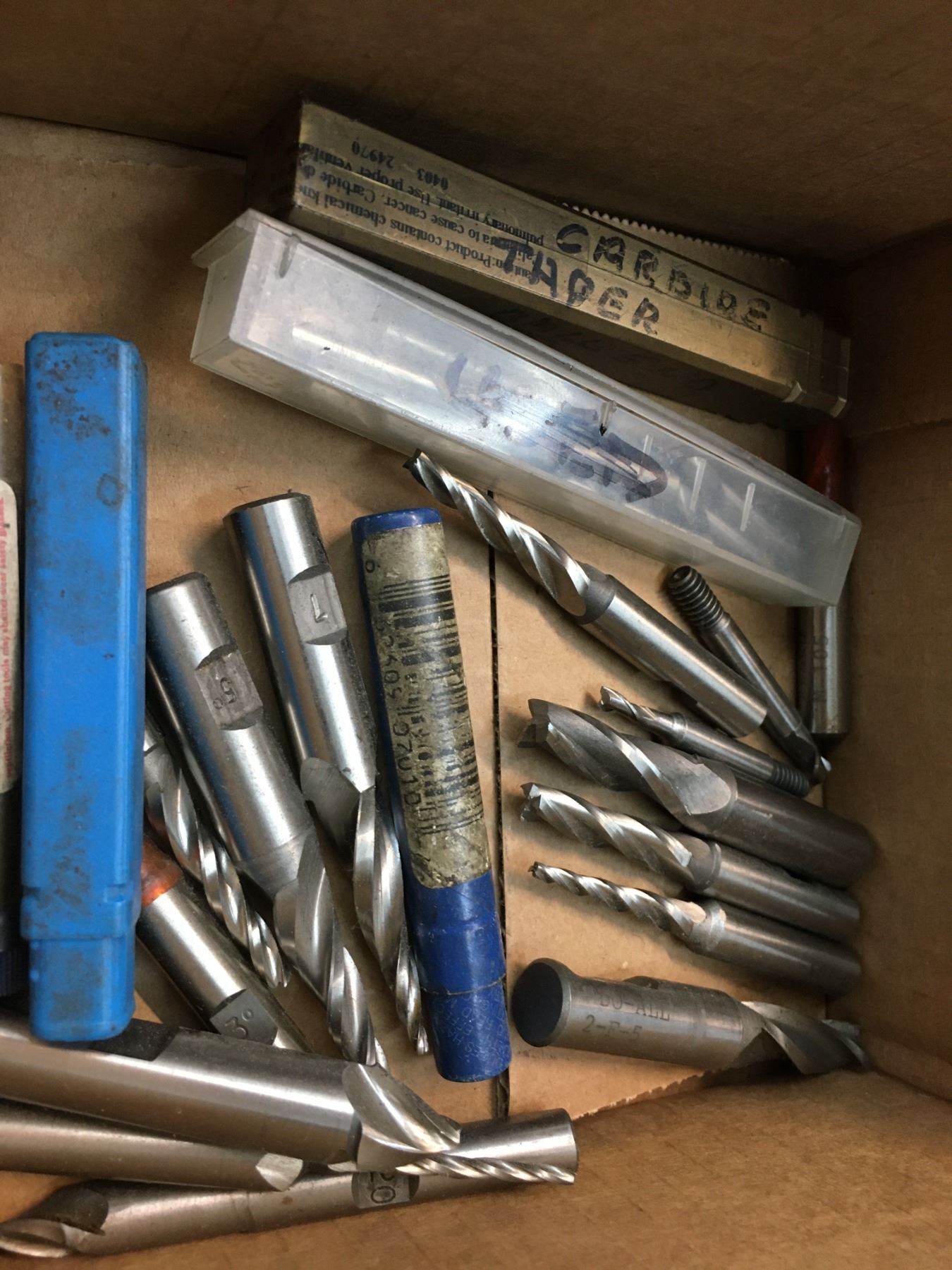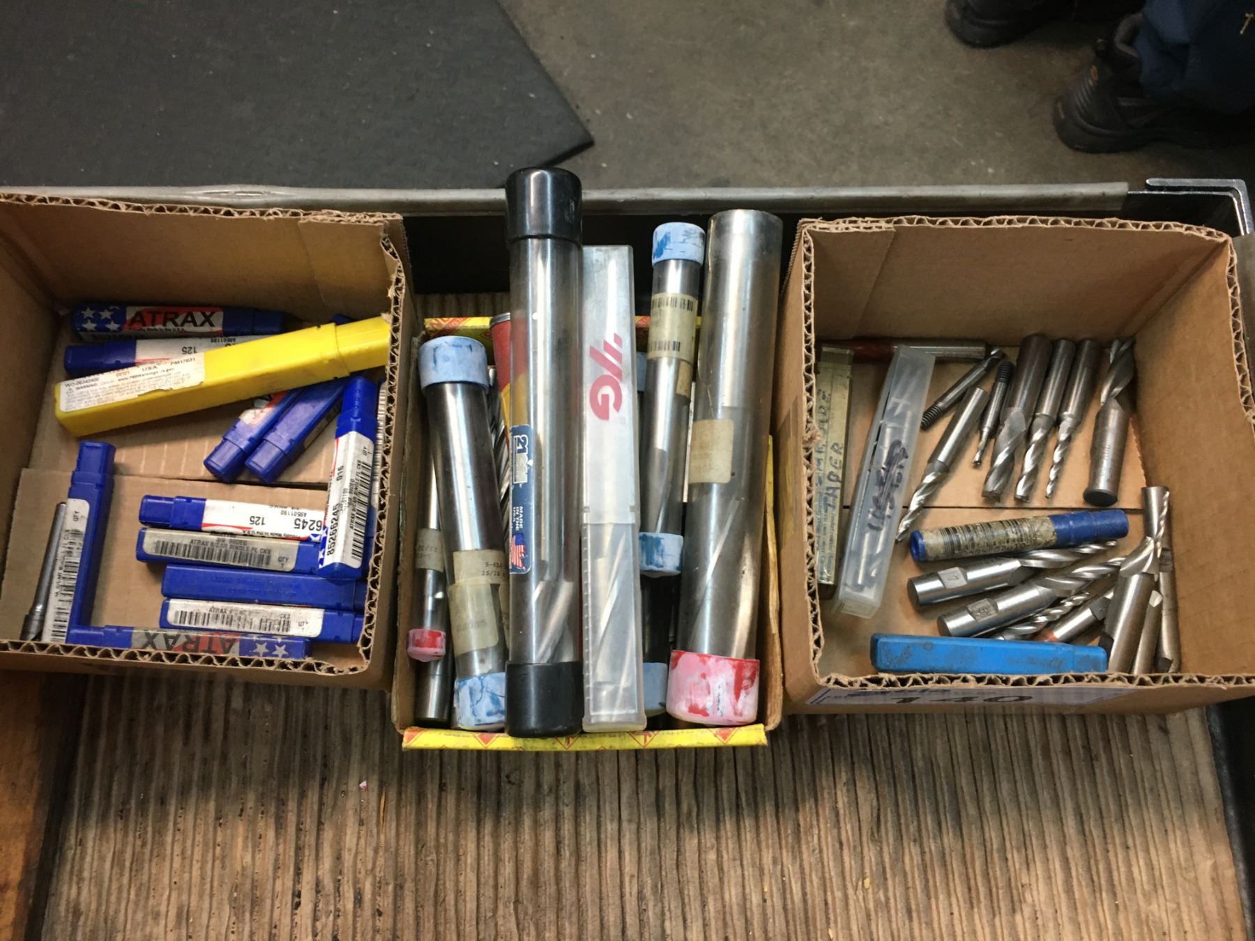 3 BOXES OF TOOLING-COUNTER BORES, TAPER END MILLS & SPOT DRILLS APPROX. 60 PCS.