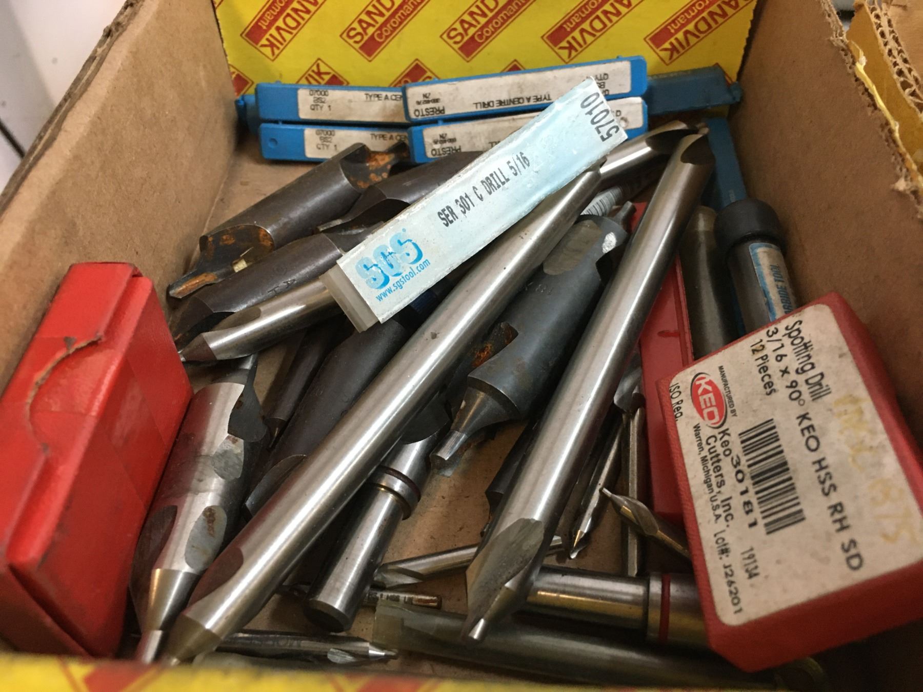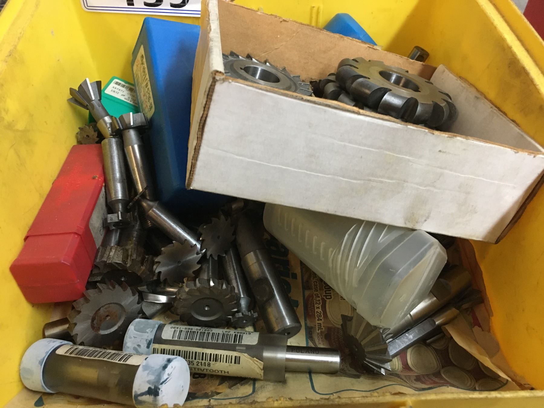 3 BOXES OF TOOLING- KEY SLOT CUTTERS, HSS SLITTING MILLS AND CENTER DRILLS APPROX. 100 PCS.