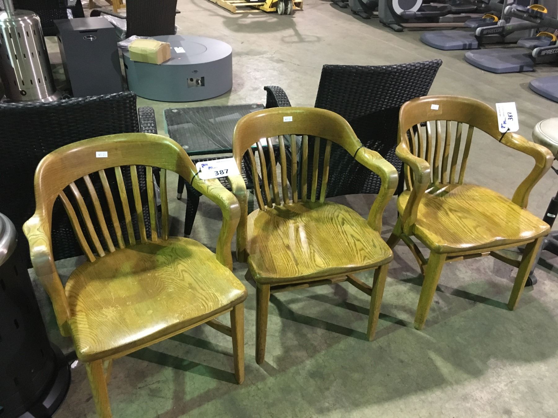 3 BROOKS-CORNING SOLID OAK CURVED BACK VINTAGE DESK CHAIRS