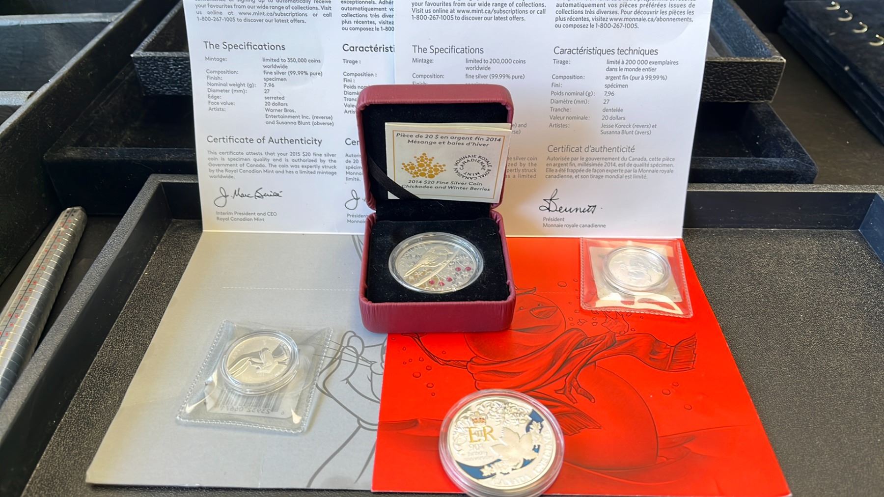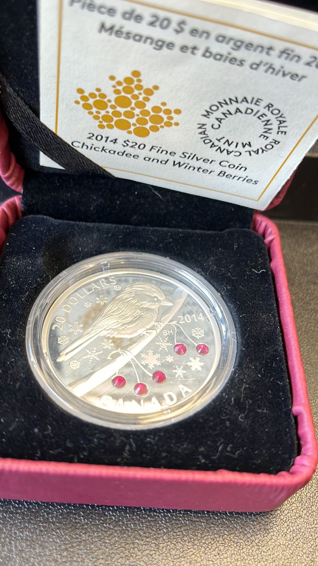 3 CANADIAN SILVER COINS, INCLUDING 3X $20 SILVER COIN, 1 CANADIAN SILVER DOLLAR 1 OZ COIN,
