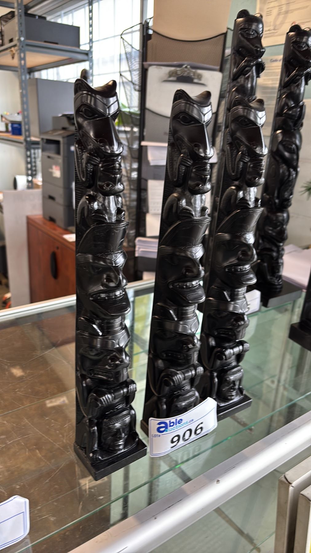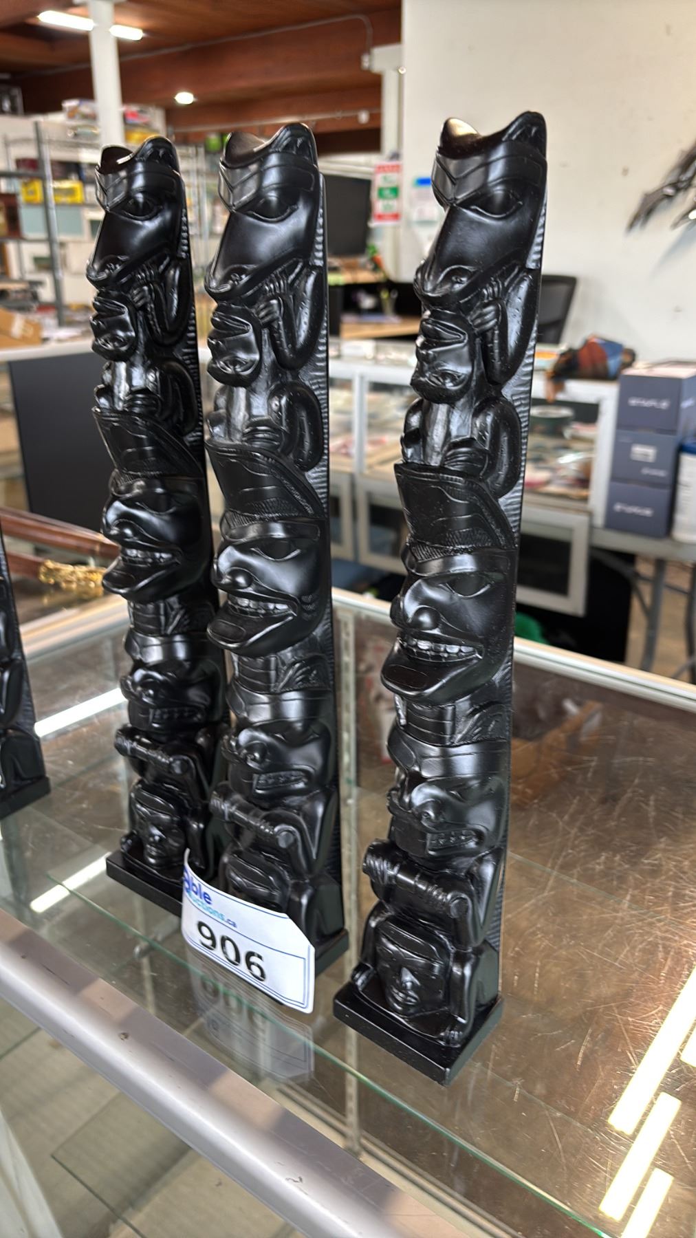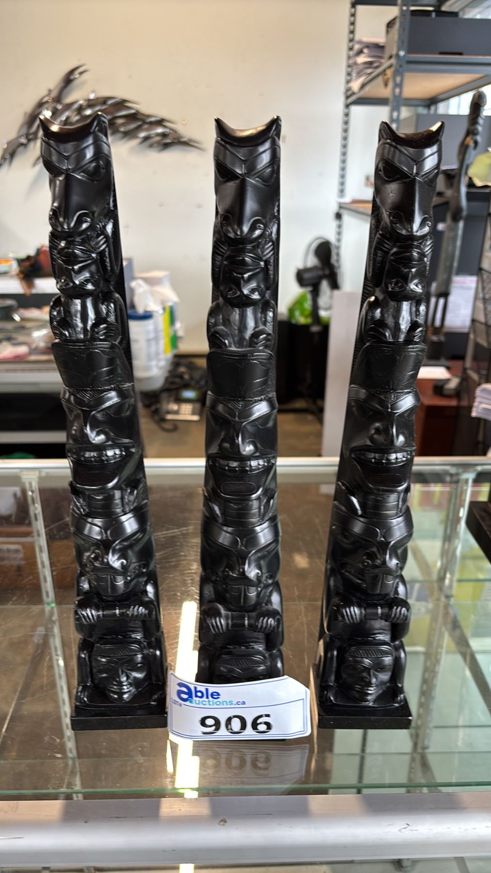 (3) CARVED REPLICA FIRST NATIONS 15.5" TOTEM POLES