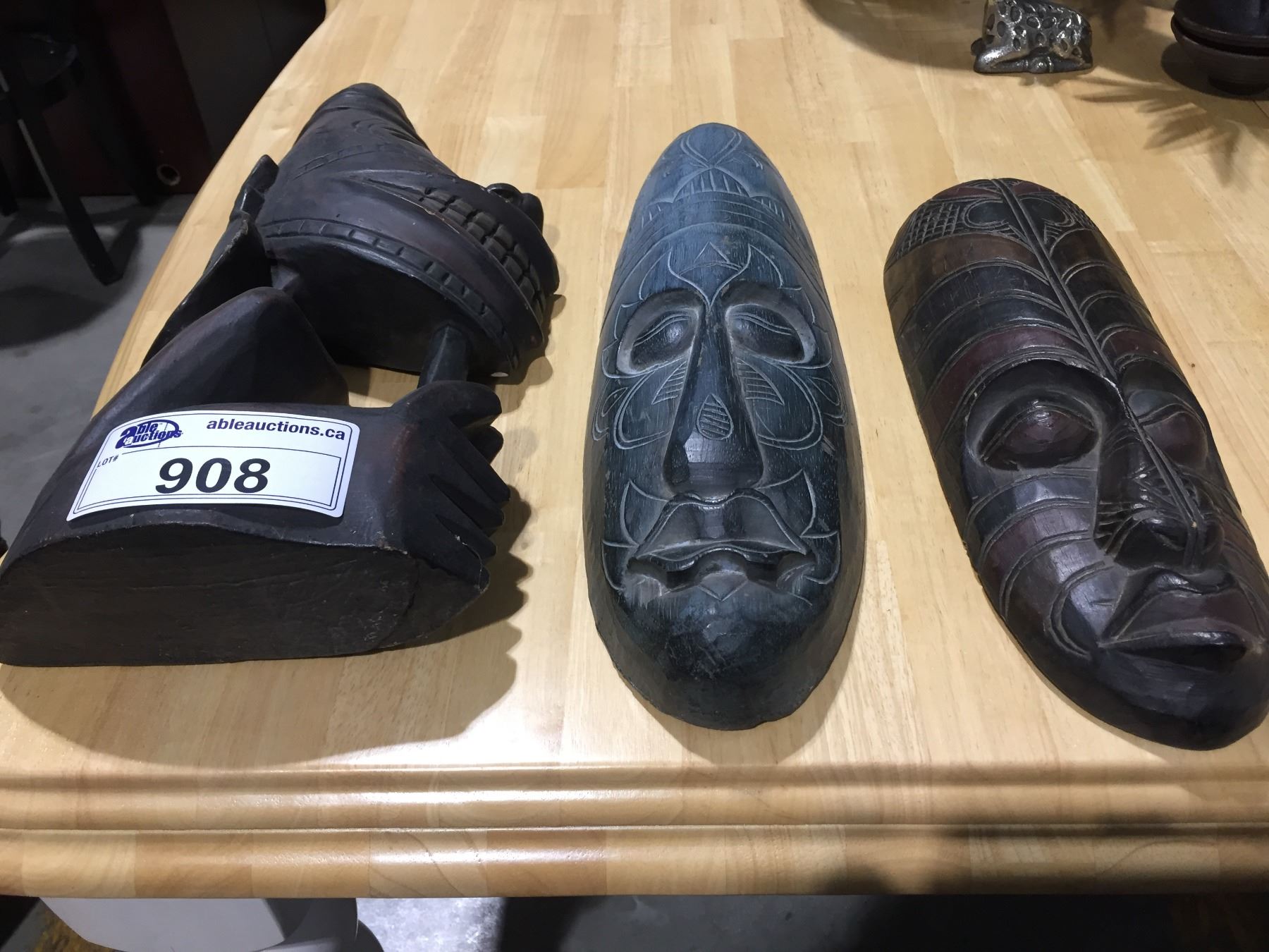 3 CARVED WOODEN DECORATIVE WALL HANGINGS