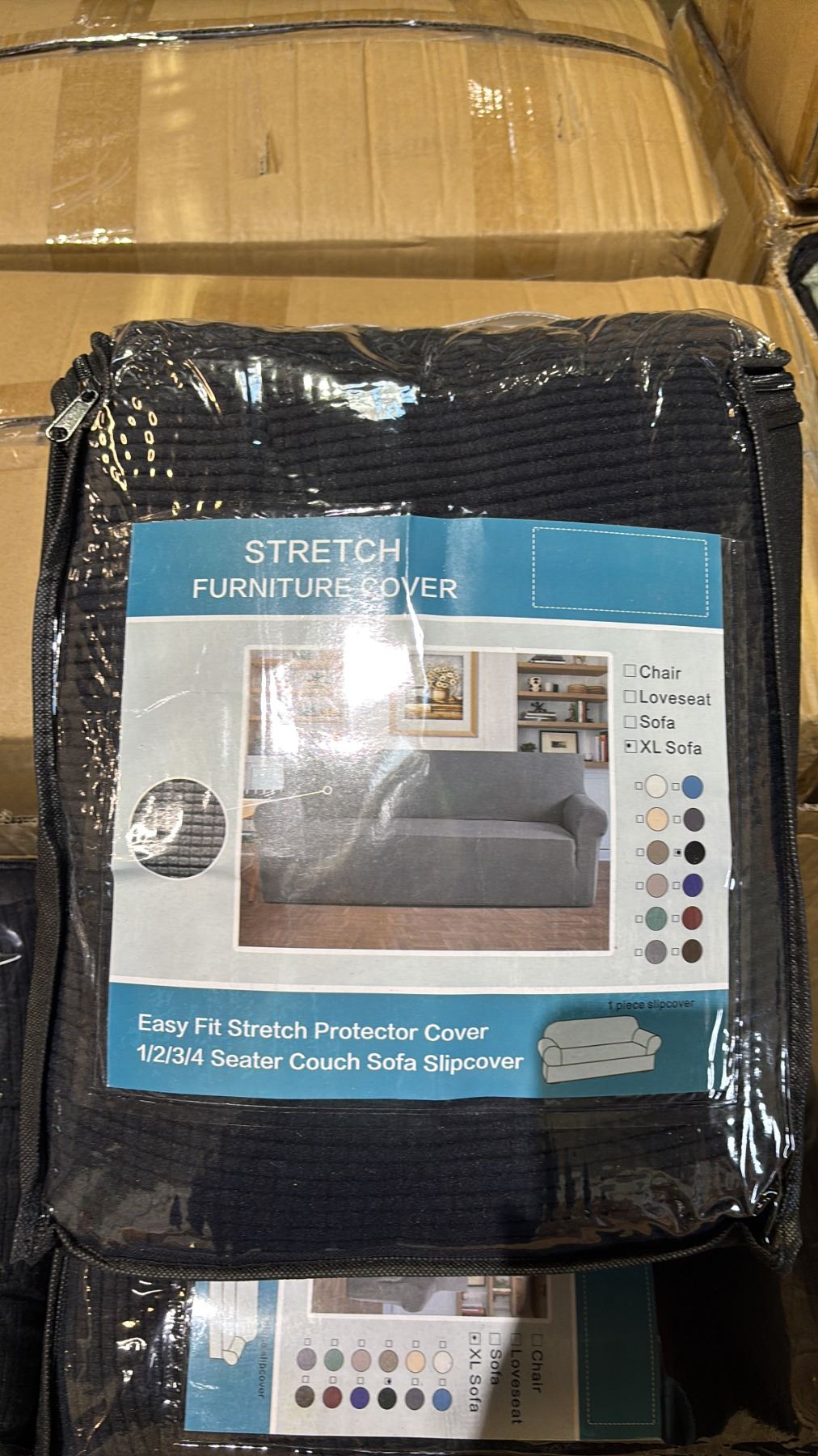 (3) CASES OF BLACK STRETCH XL SOFA COVERS