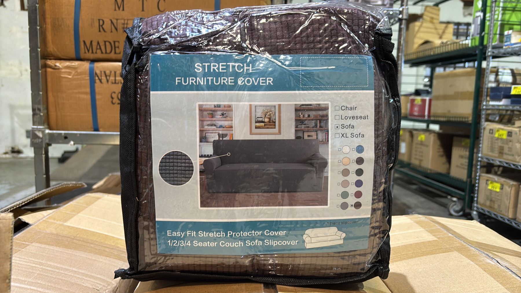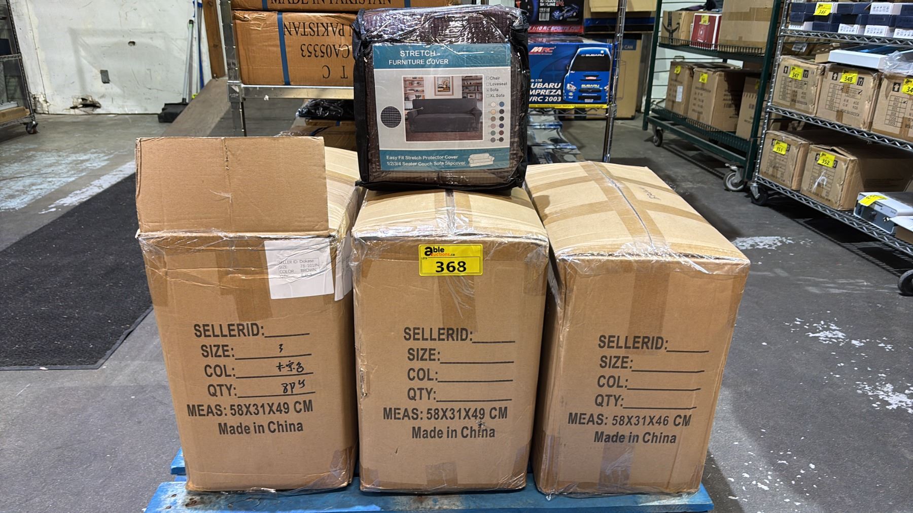 (3) CASES OF BROWN STRETCH SOFA COVERS