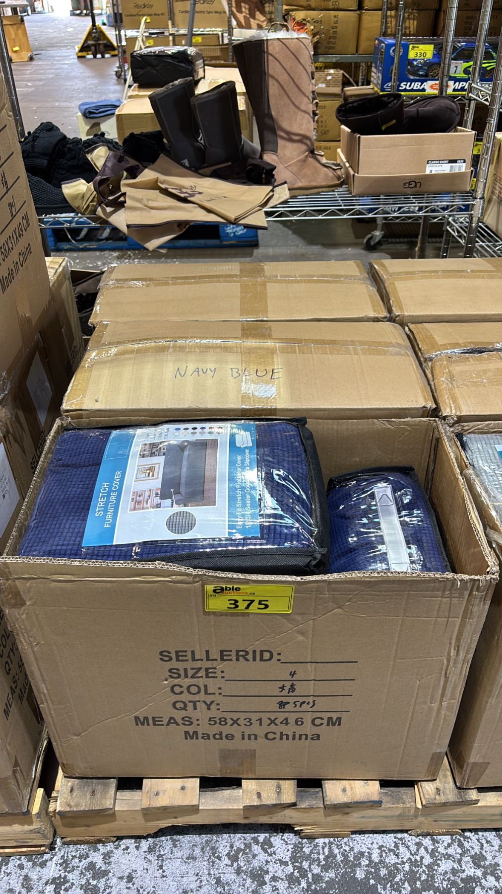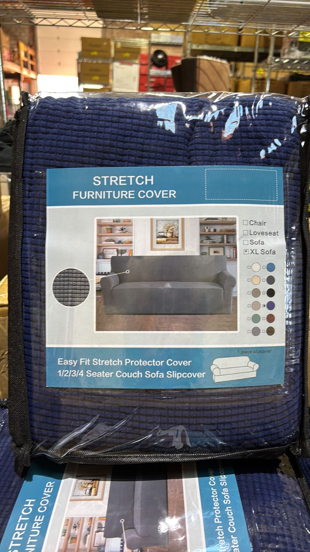 (3) CASES OF NAVY BLUE STRETCH SOFA COVERS