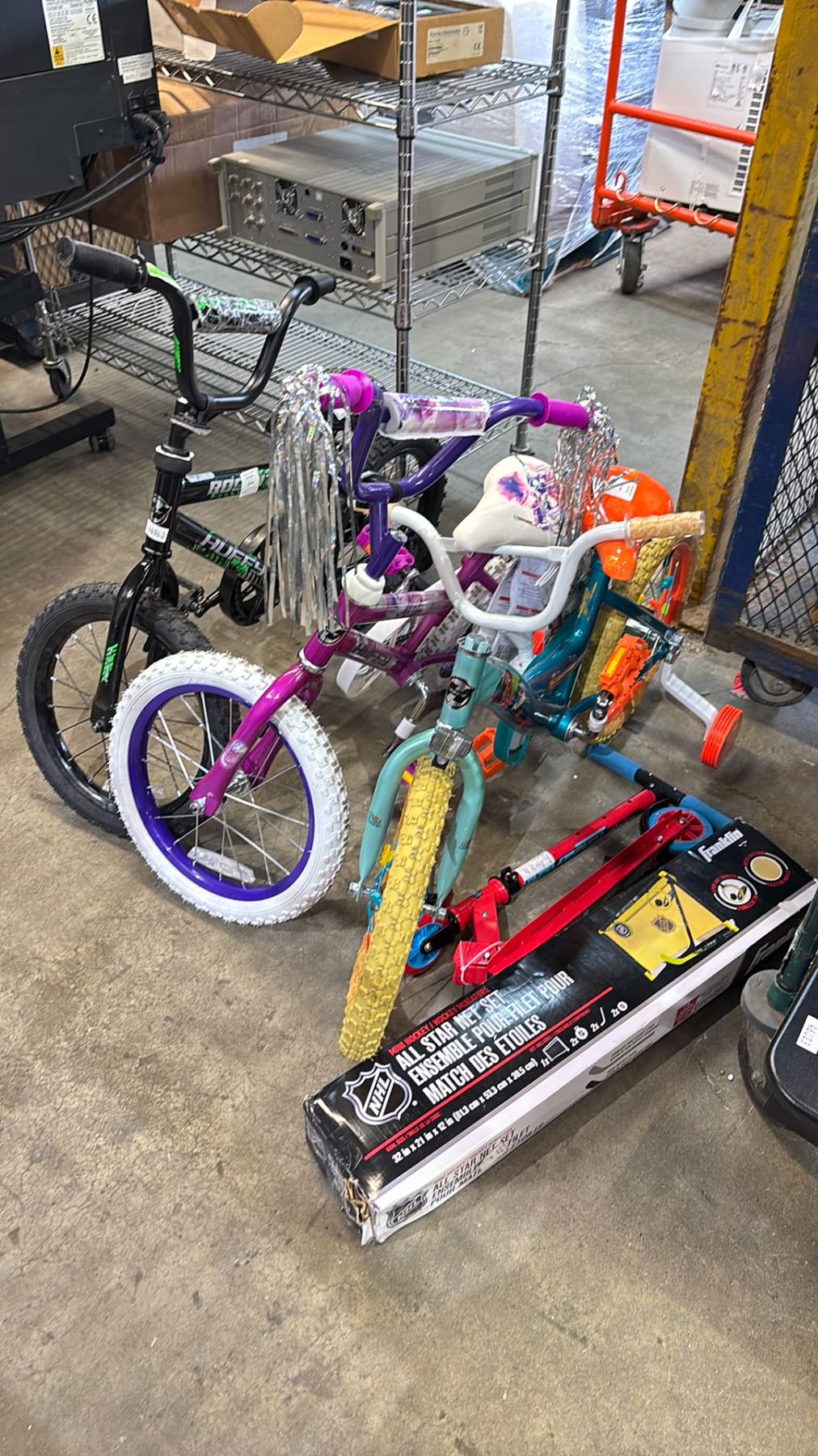 3 CHILDRENS BIKES, SCOOTER & ALL STAR NET SET *MISSING PARTS*