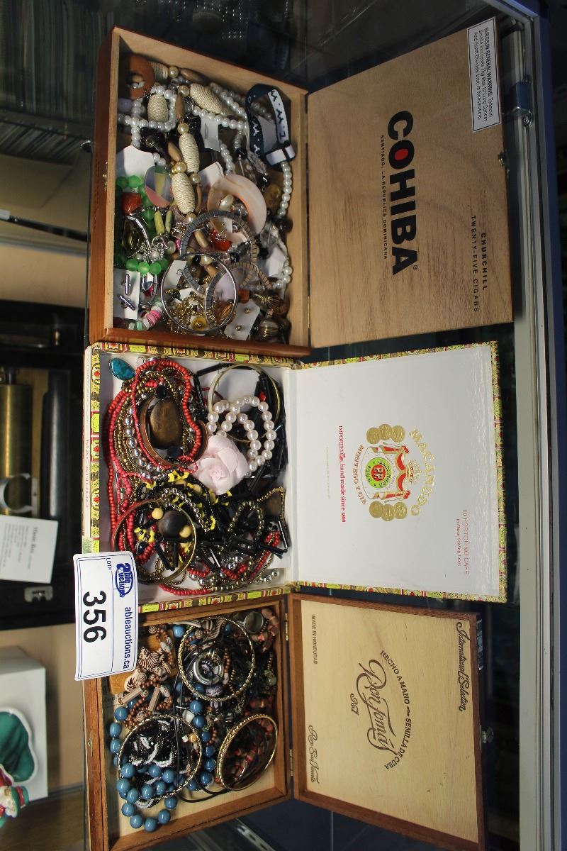 3 CIGAR BOXES OF COSTUME JEWELLERY