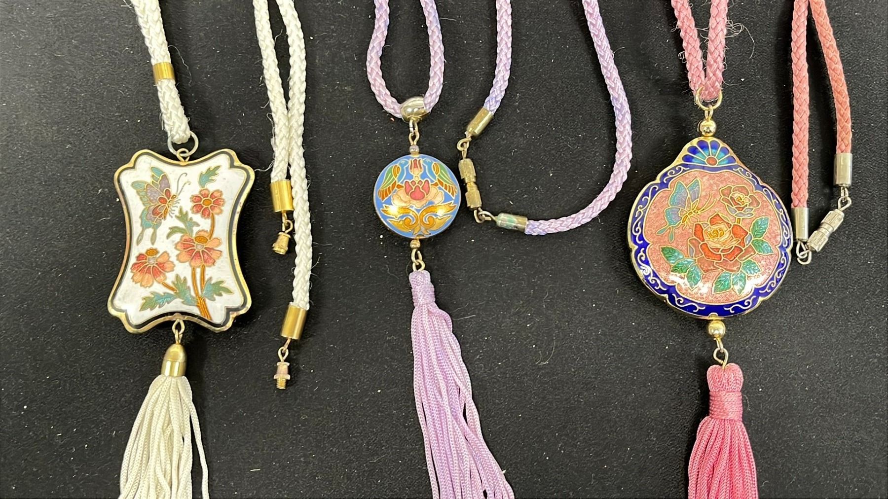 3 CLOISONNE ENAMEL NECKLACES