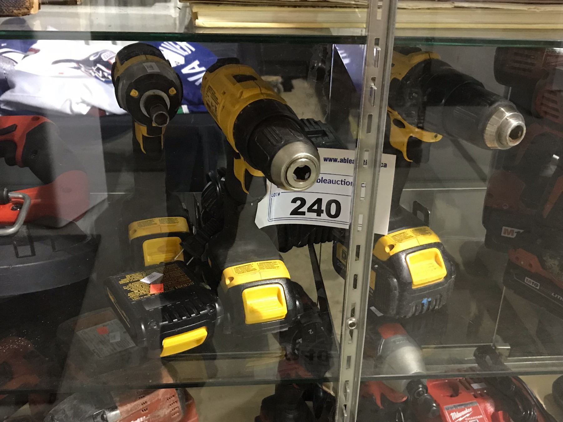 3 DEWALT CORDLESS DRILLS WITH BATTERIES AND CHARGER