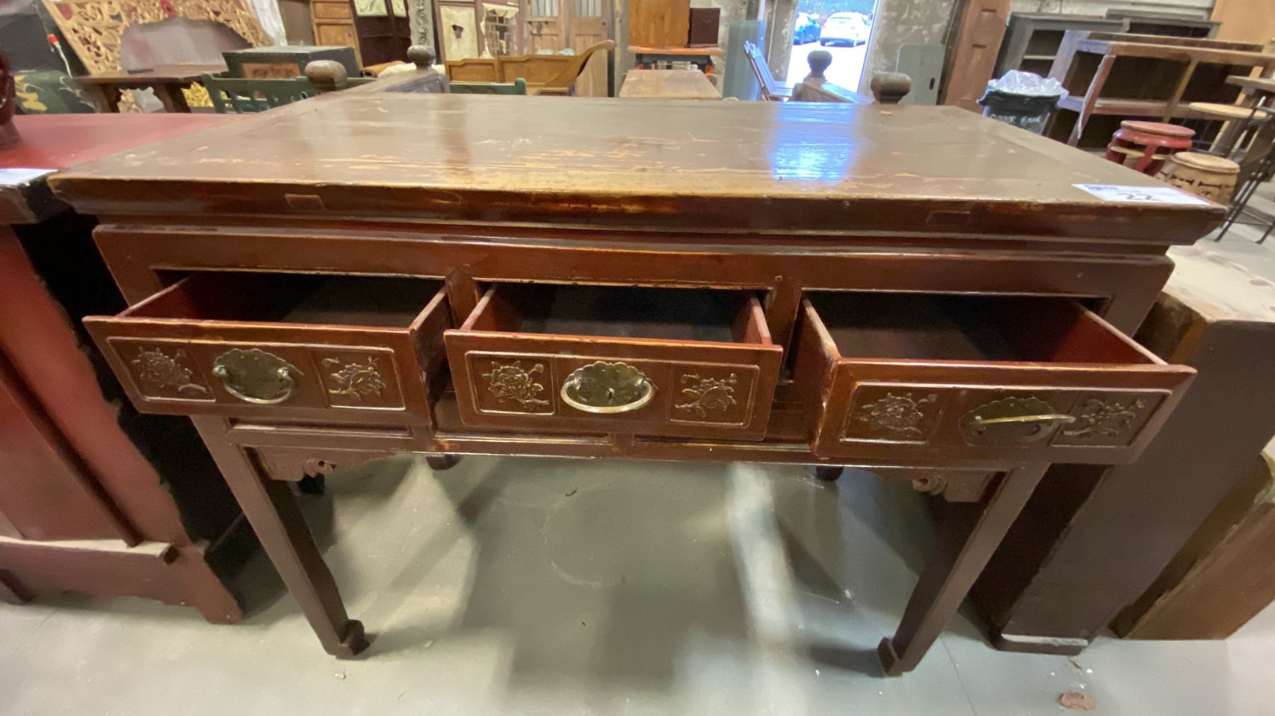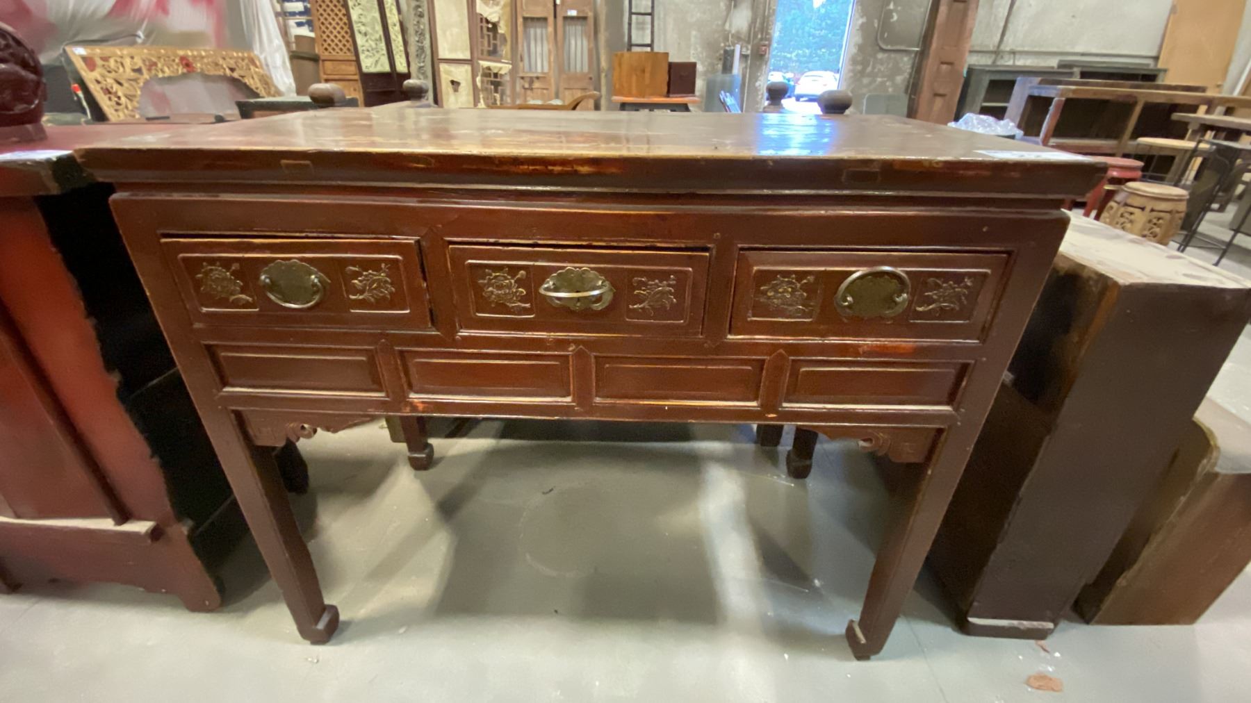 3 DRAWER SOLID WOOD CARVED FRONT BUFFET CABINET