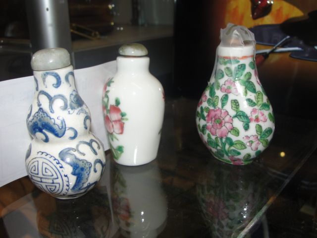 3 EARLY ORIENTAL CERAMIC SNUFF BOTTLES