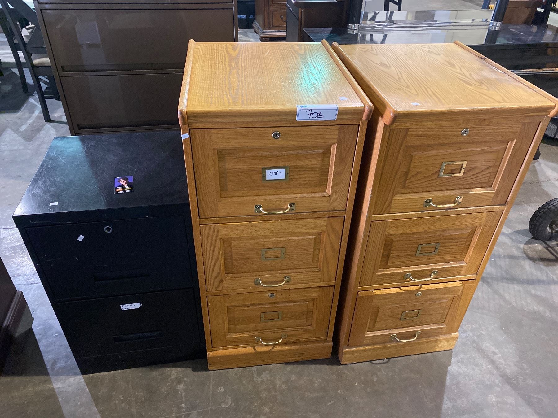 3 FILING CABINETS (2 WOOD 1 METAL)