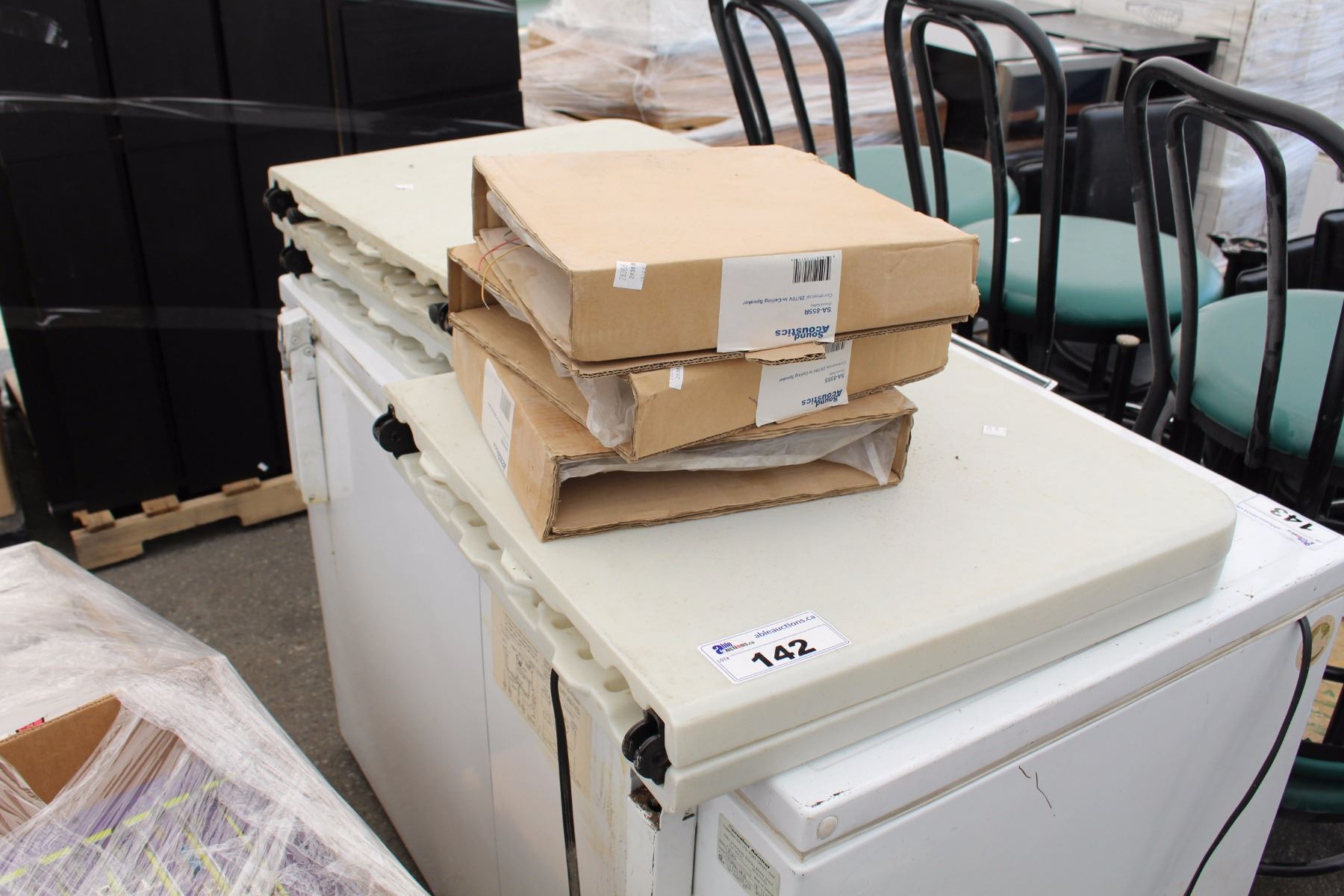3 FOLDING TABLES AND 3 COMMERCIAL CEILING SPEAKERS