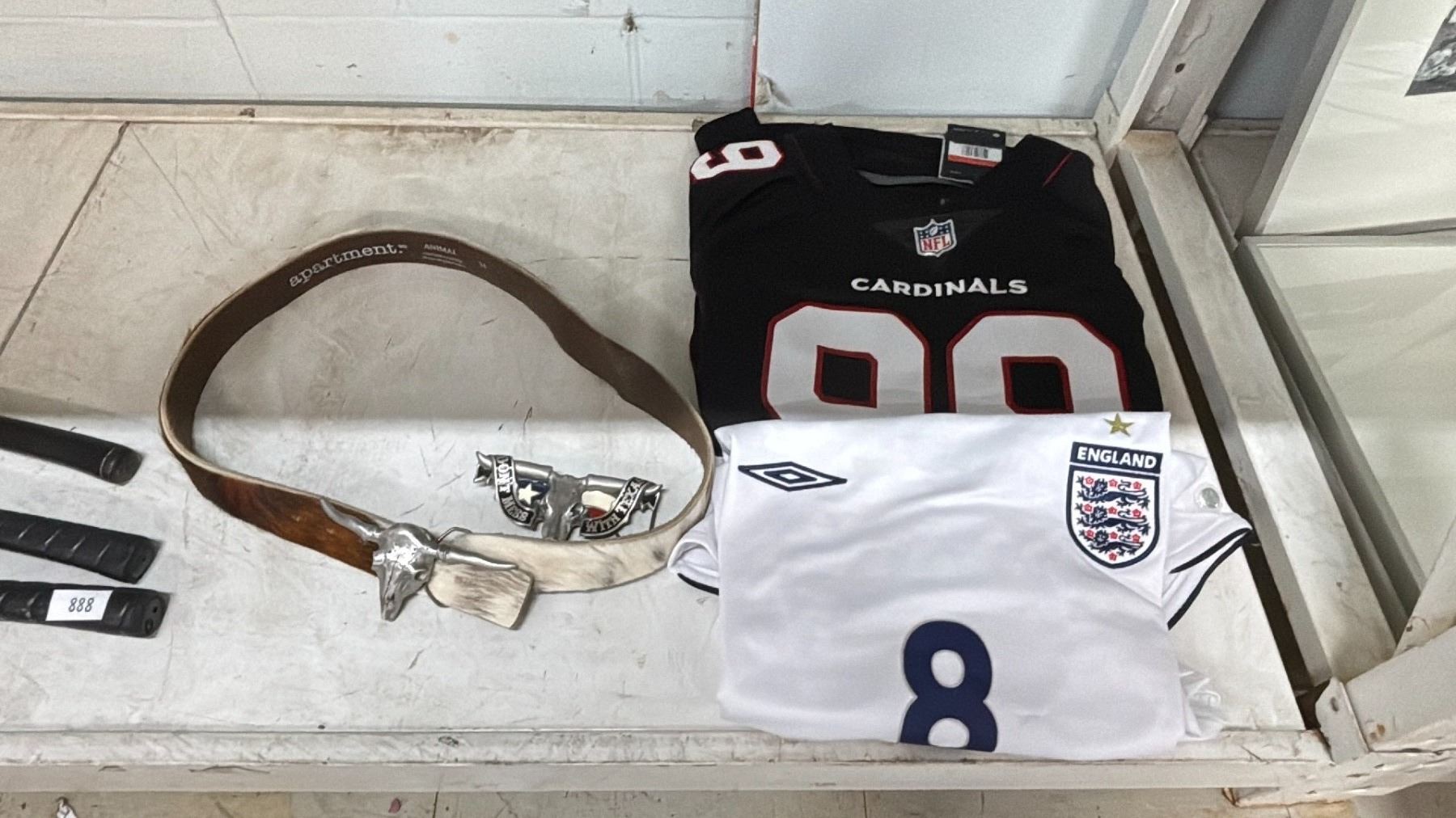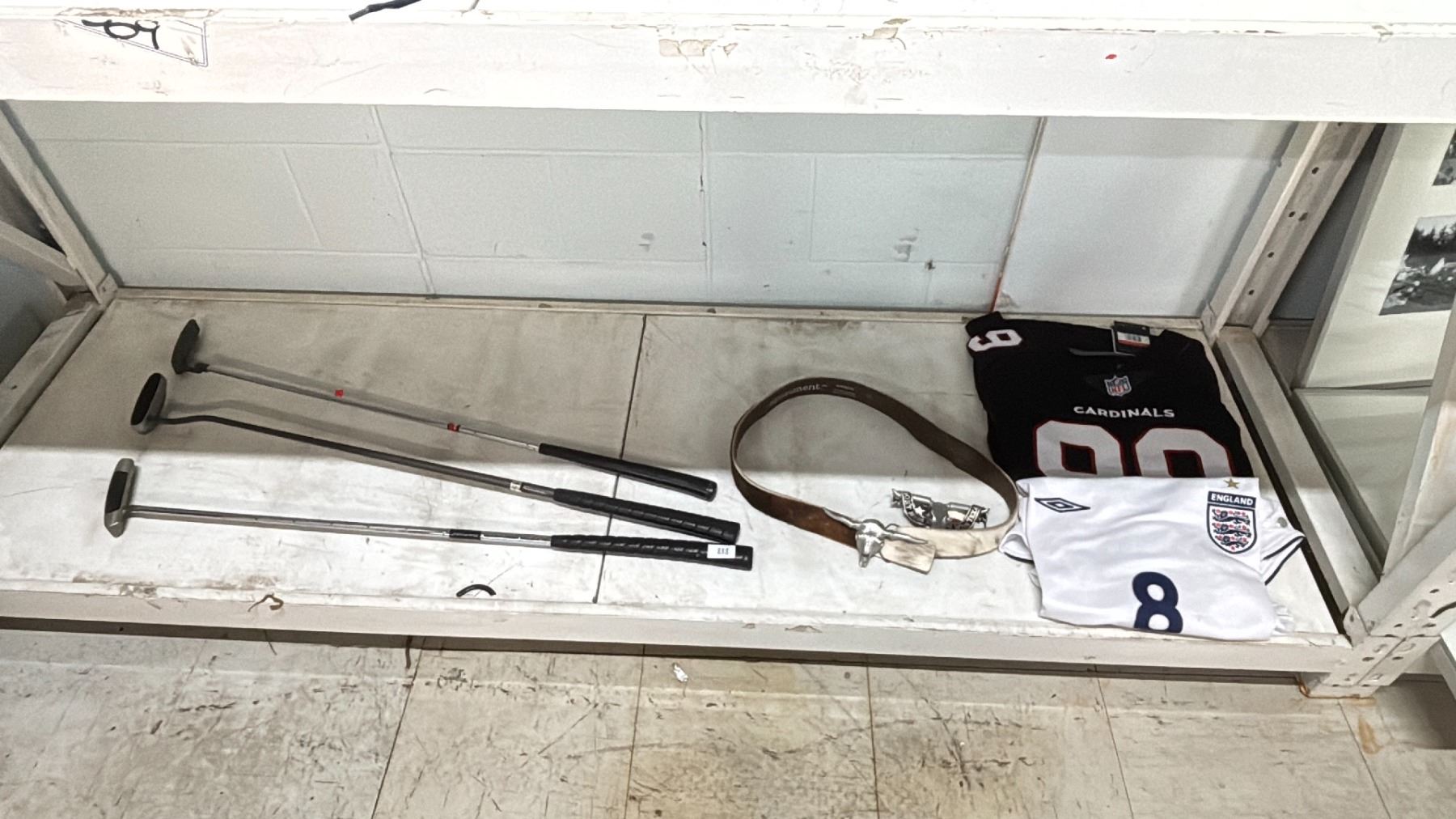 3 GOLF CLUBS, BELT & 2 JERSEYS