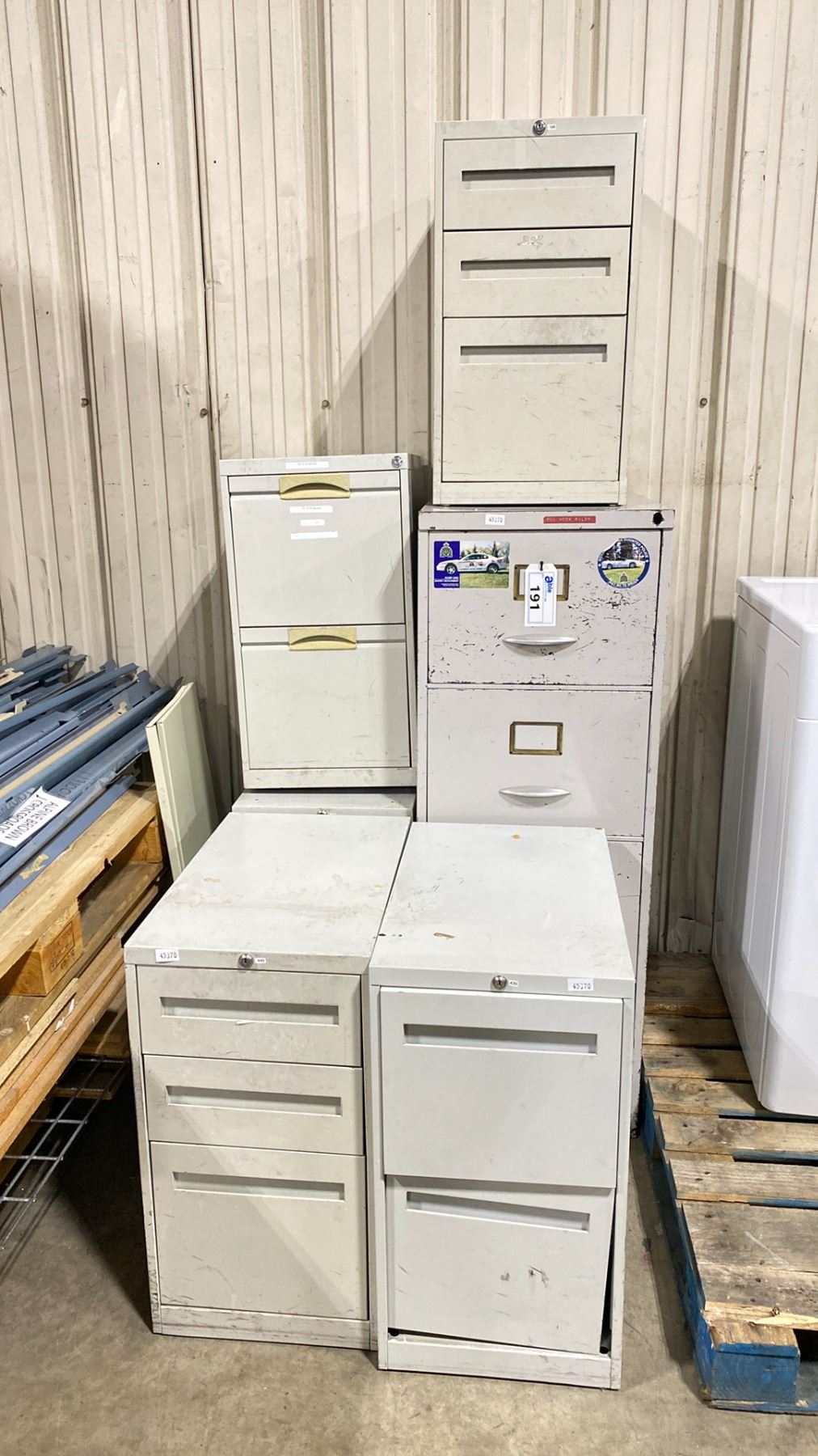 3 GREY 3 DRAWER FILE CABINETS, 2 GREY 2 DRAWER FILE CABINETS & 1 GREY 4 DRAWER FILE CABINET