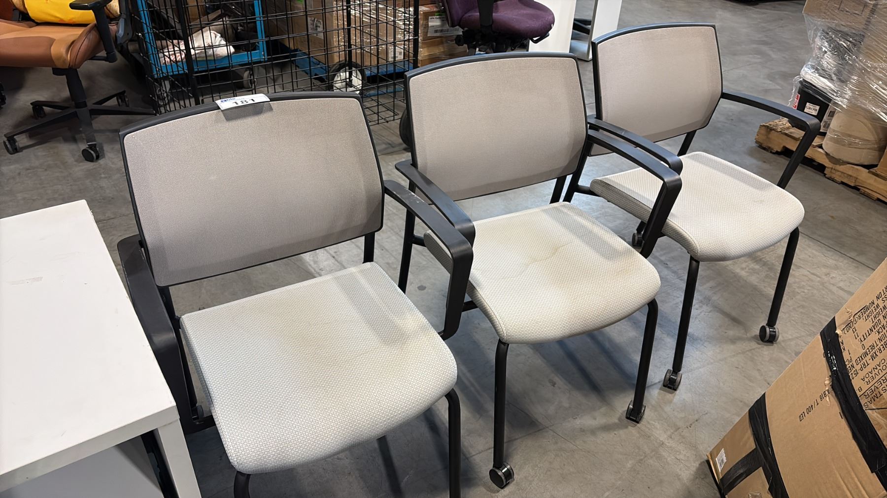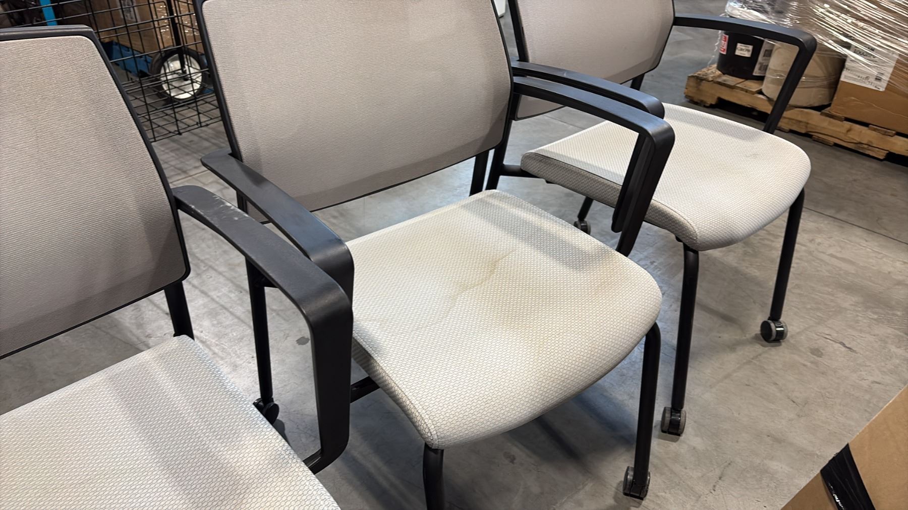 3 GREY MOBILE CLIENT CHAIRS WITH CONDITION ISSUES