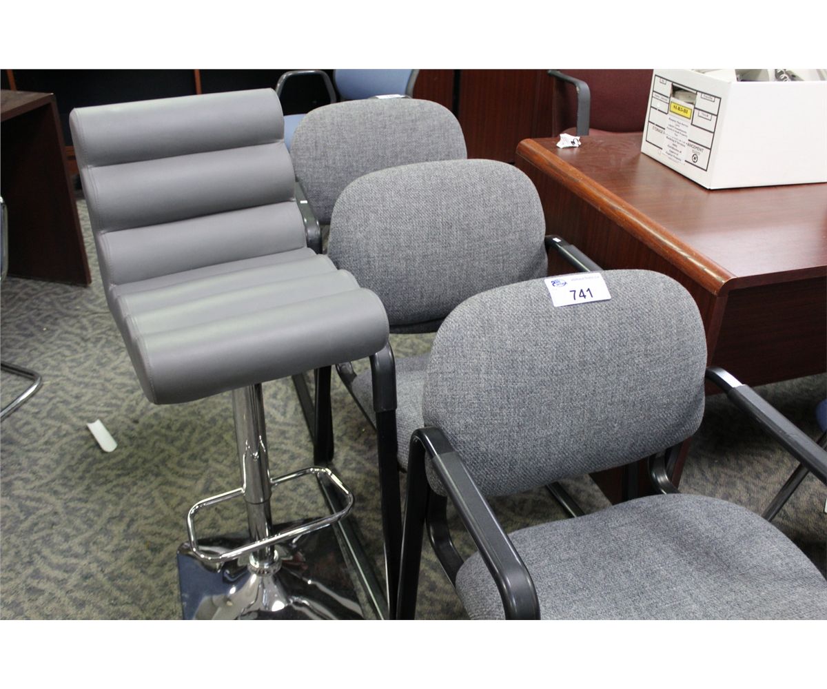 3 GREY SLED BASE CLIENT CHAIRS AND 1 GREY PNEUMATIC STOOL