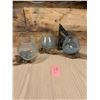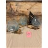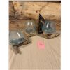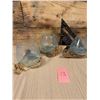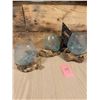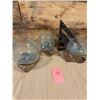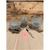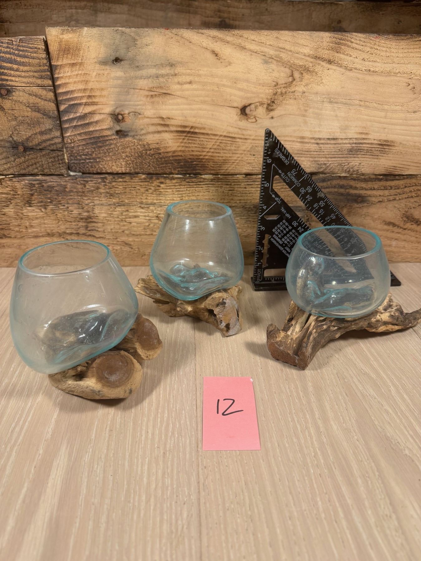 3- HAND MADE MOLTEN GLASS BOWLS ON TEAK BASES
