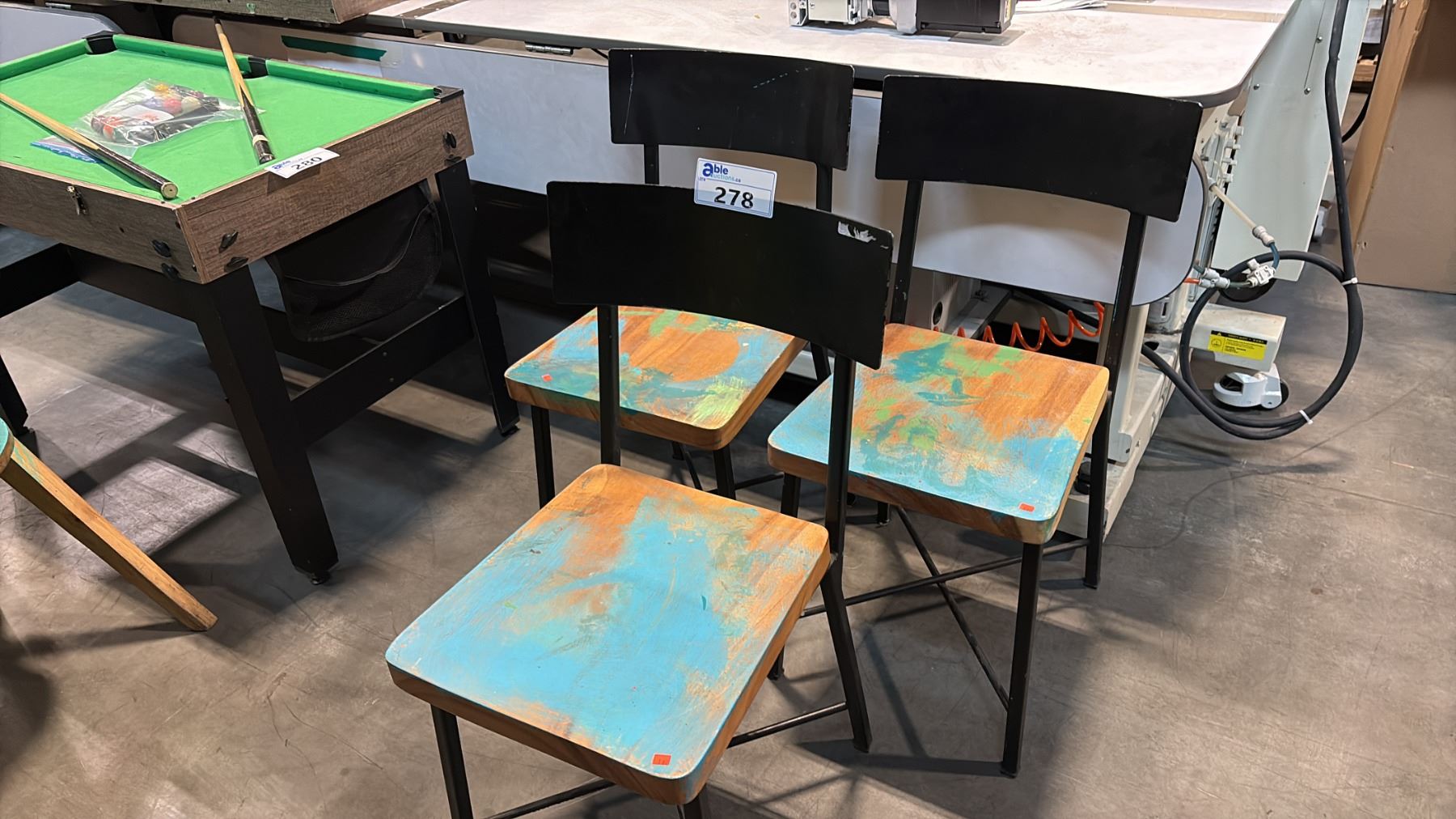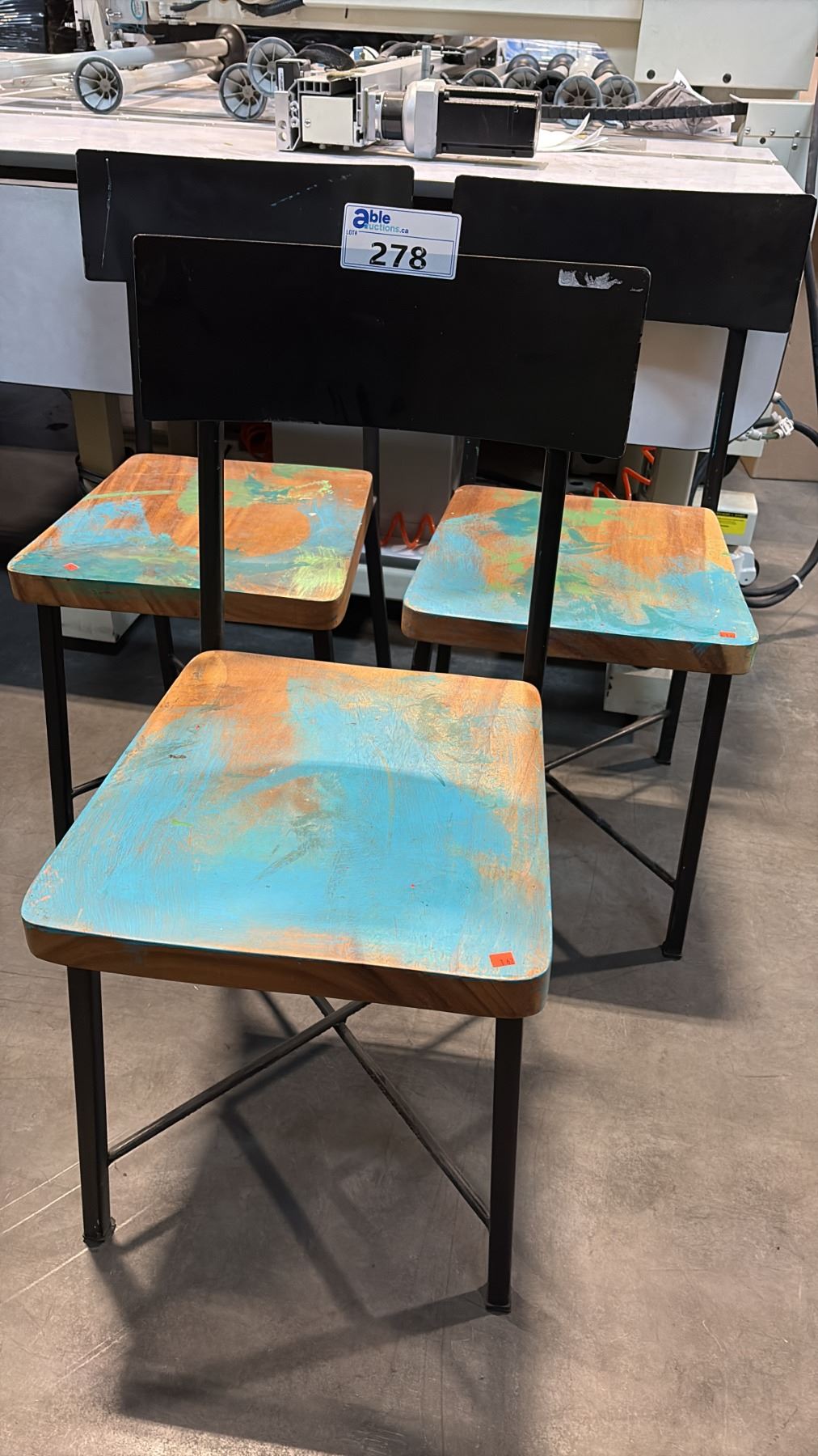 3 HARDWOOD METAL FRAMED SIDE CHAIRS