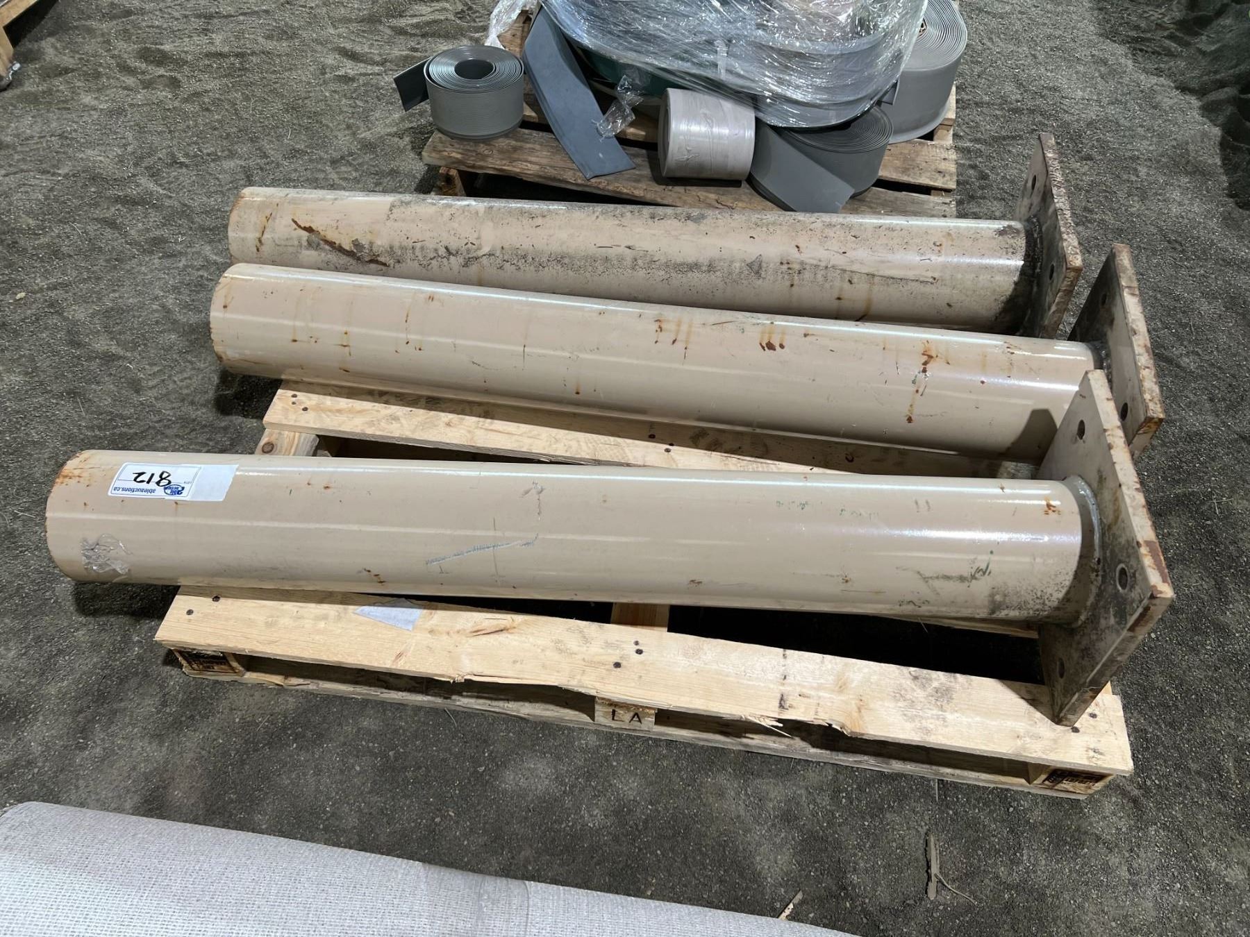 3 HEAVY DUTY STORE BOLLARDS (SAFETY BARRICADES). 4' X 6.5" DIAMETER HEAVY GAUGE