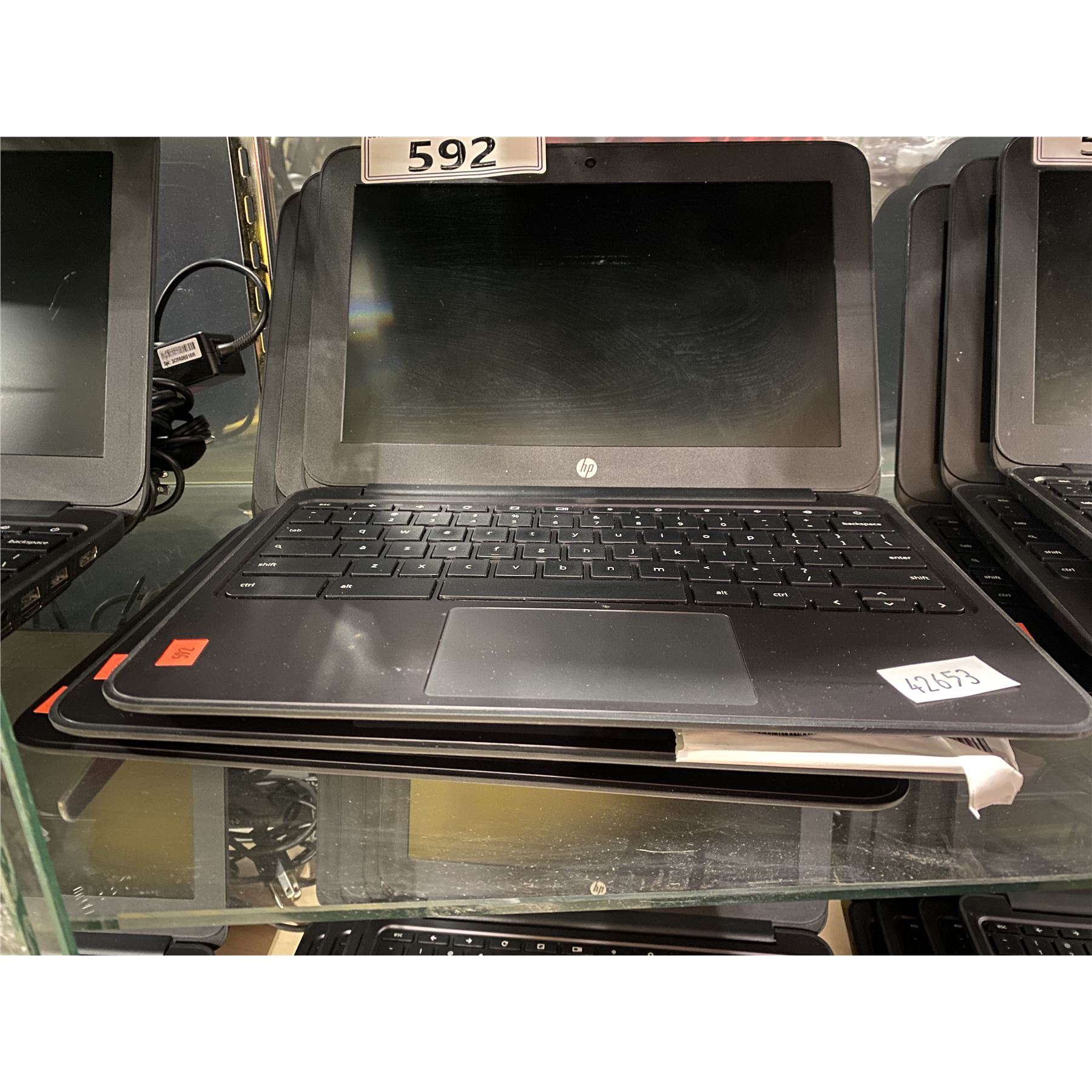 3 HP GOOGLE CHROMEBOOK LAPTOP COMPUTERS WITH POWER SUPPLIES ( C GRADE )