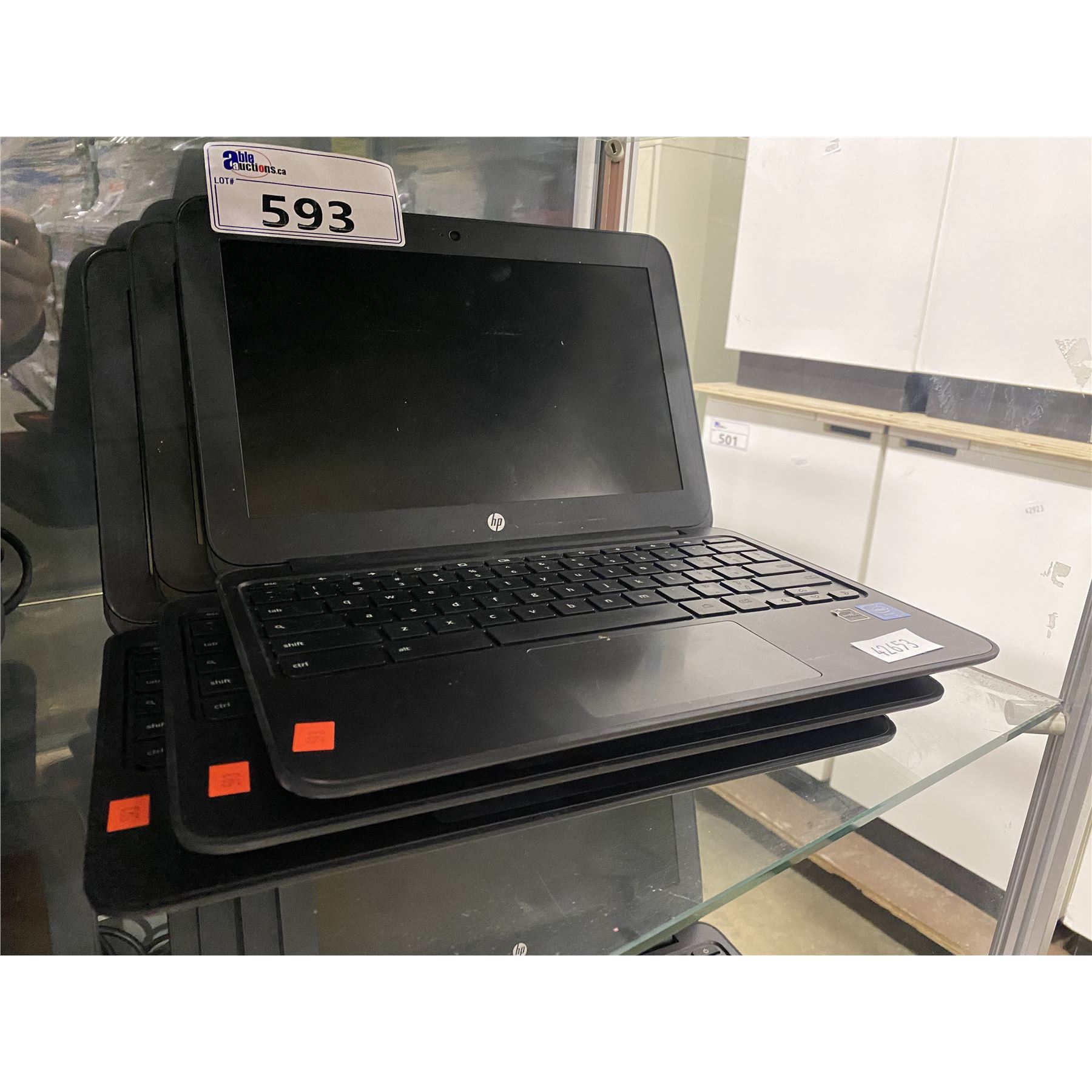 3 HP GOOGLE CHROMEBOOK LAPTOP COMPUTERS WITH POWER SUPPLIES ( C GRADE )