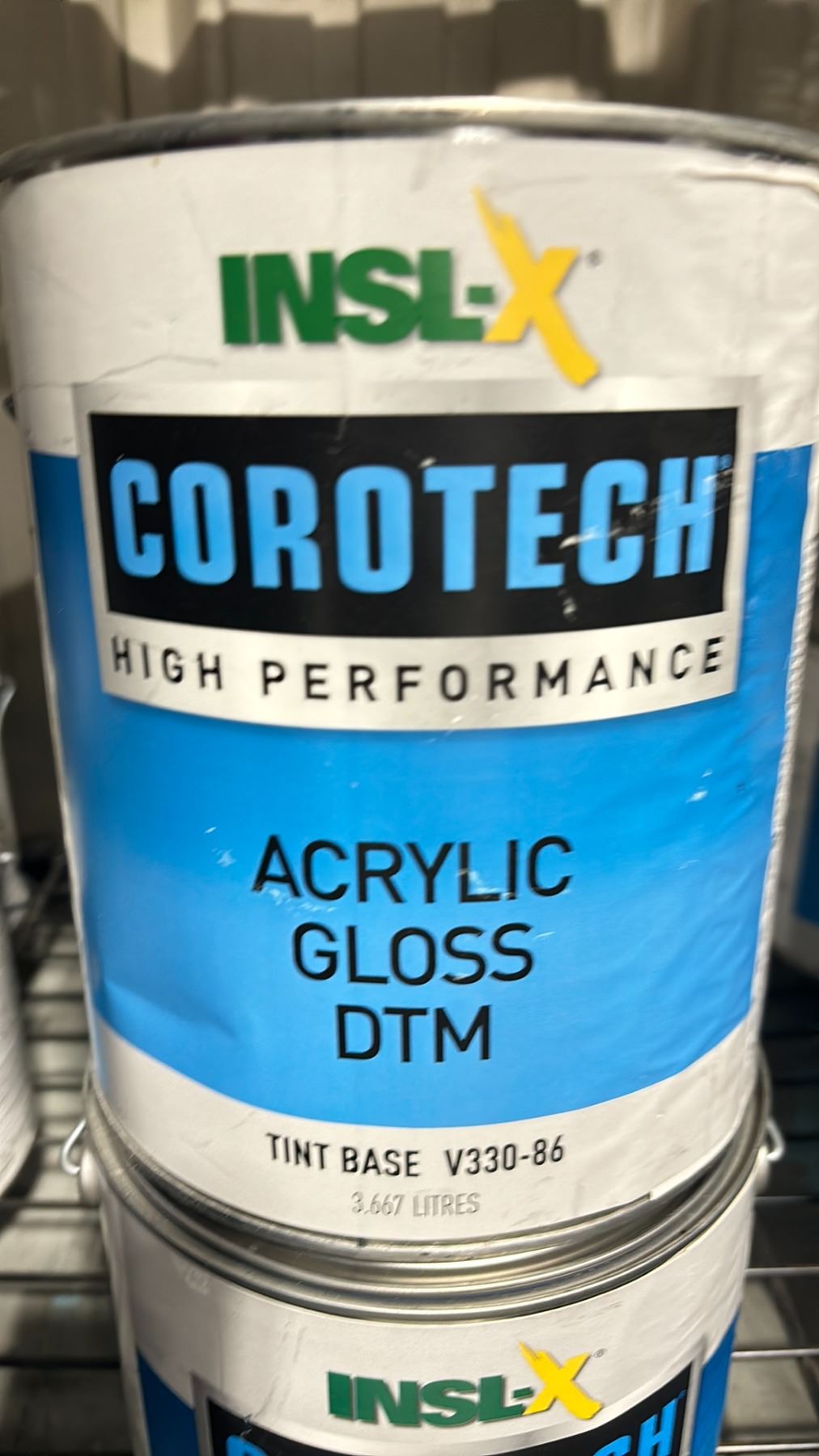 3 INSLX-X COROTECH HIGH PERFORMANCE ACRYLIC SEMI-GLOSS DTM TINT BASE ( 3.667 LITRES EACH ) & 1 INSL-X COROTECH HIGH PERFORMANCE ACRYLIC GLOSS DTM ( 3.667 LITRES )