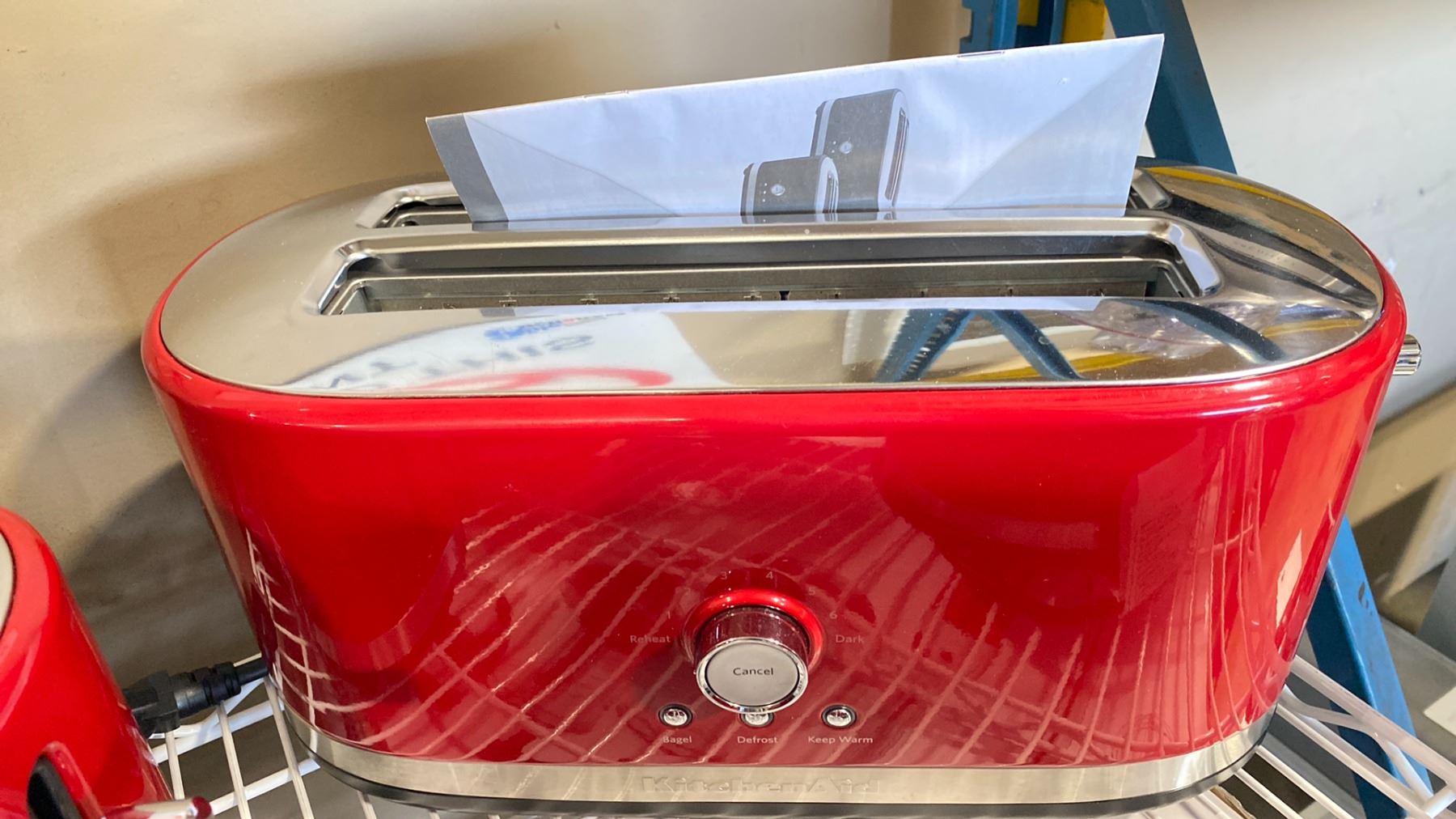 3 KITCHENAID RED COUNTERTOP ELECTRIC SMALL APPLIANCES INCLUDING: KITCHENAID LARGE SLICE TOASTER,